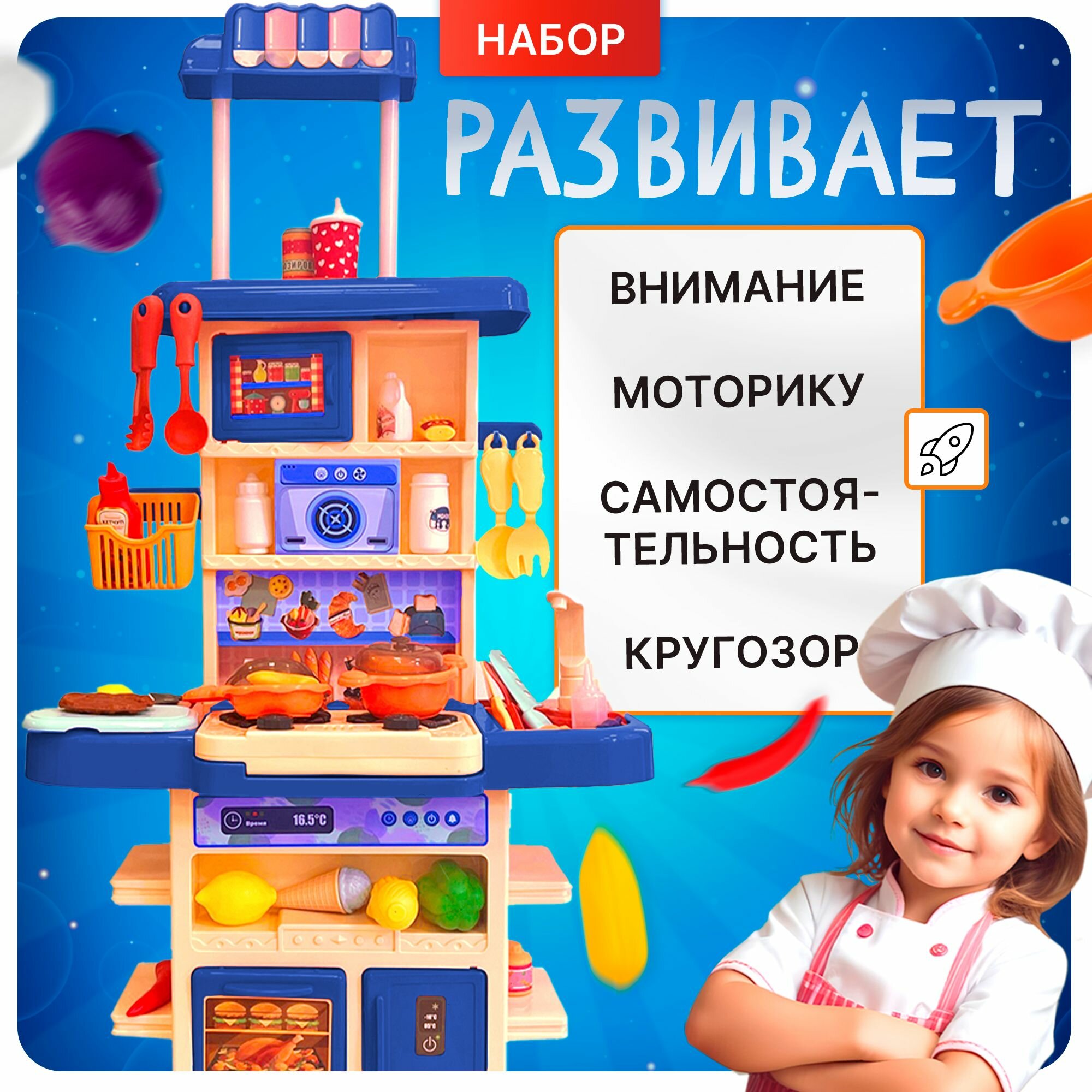 Интерактивная детская кухня SHARKTOYS Little Chef, настоящий пар, свет, звук интересное: