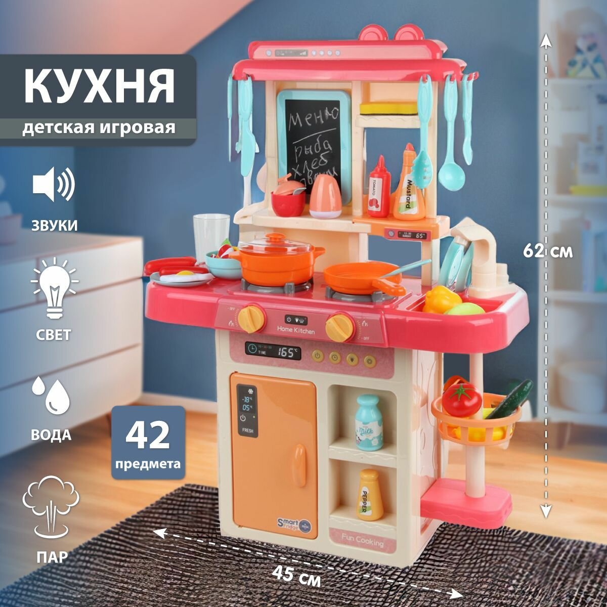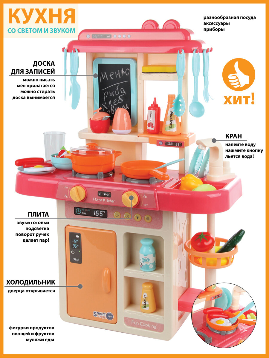 Детская игровая кухня со светом и звуком 62 см, 42 предмета, Veld Co / Игрушечная кухонная техника с водой и паром интересное: