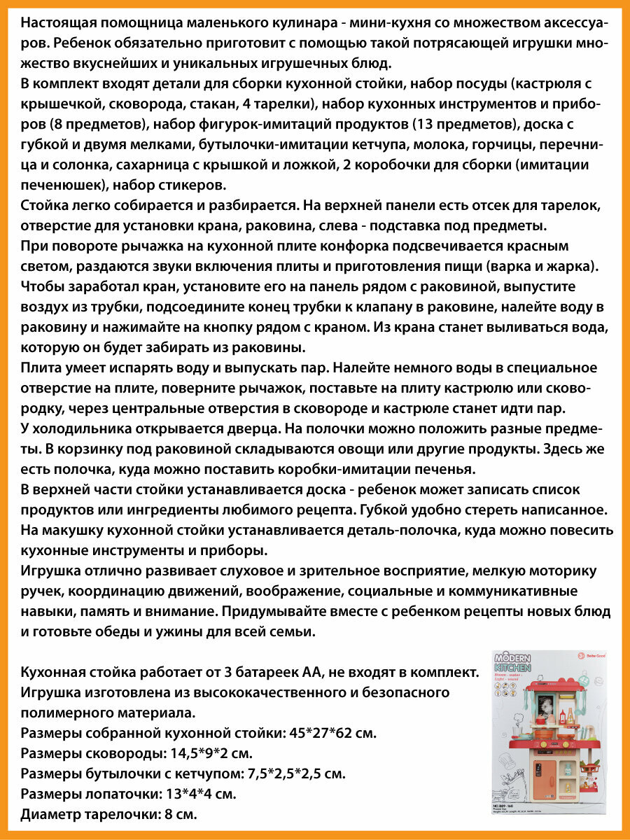Ниже Вы можете прочитать отзывы на Детская игровая кухня со светом и звуком 62 см, 42 предмета, Veld Co / Игрушечная кухонная техника с водой и паром, ознакомится с подробными характеристиками, посмотреть интересные обзоры и фотографии на Детская игровая кухня со светом и звуком 62 см, 42 предмета, Veld Co / Игрушечная кухонная техника с водой и паром.