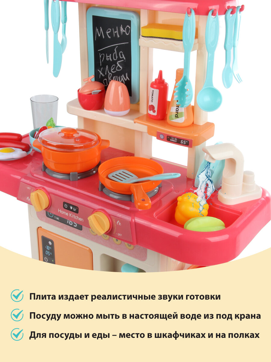 Купить Детская игровая кухня со светом и звуком 62 см, 42 предмета, Veld Co / Игрушечная кухонная техника с водой и паром