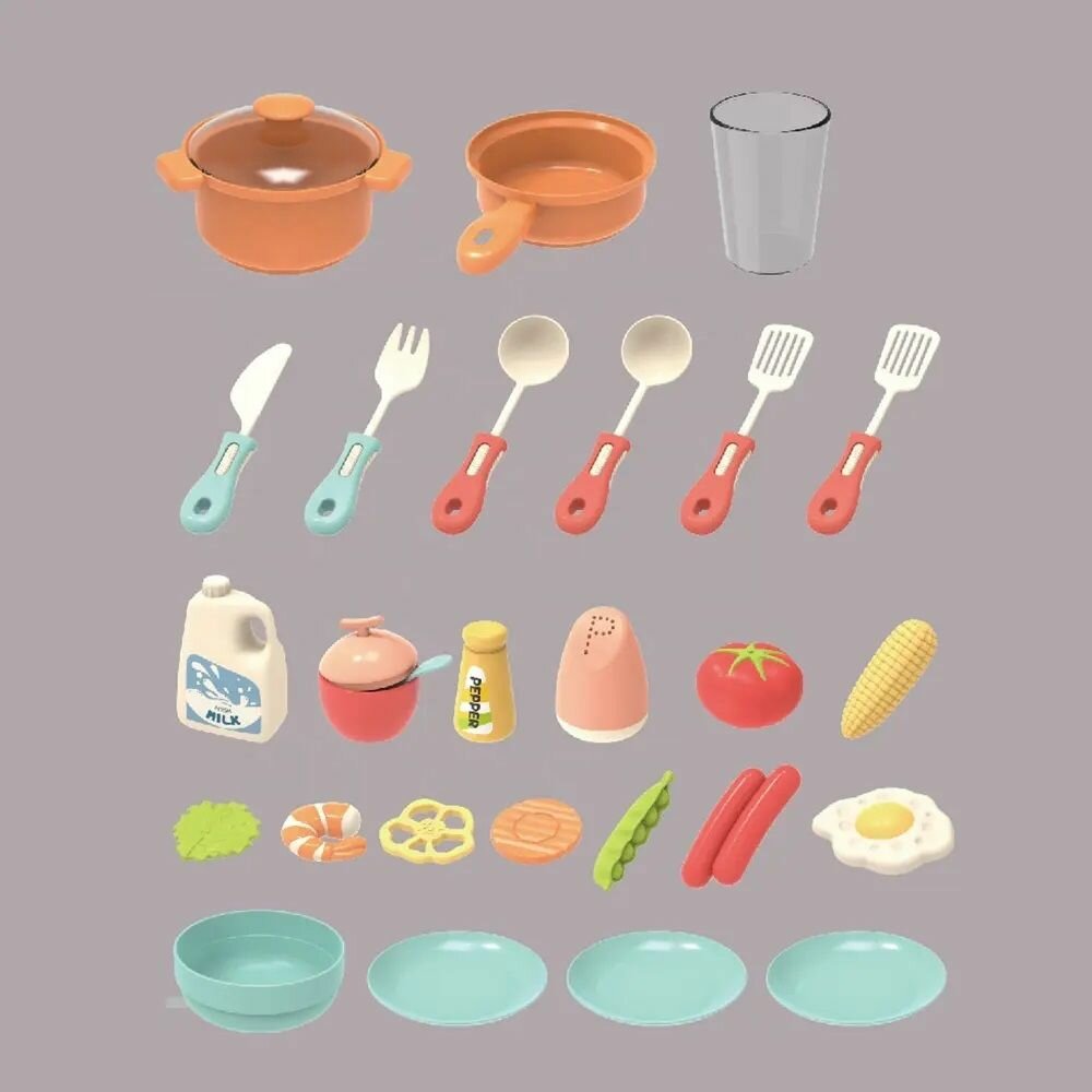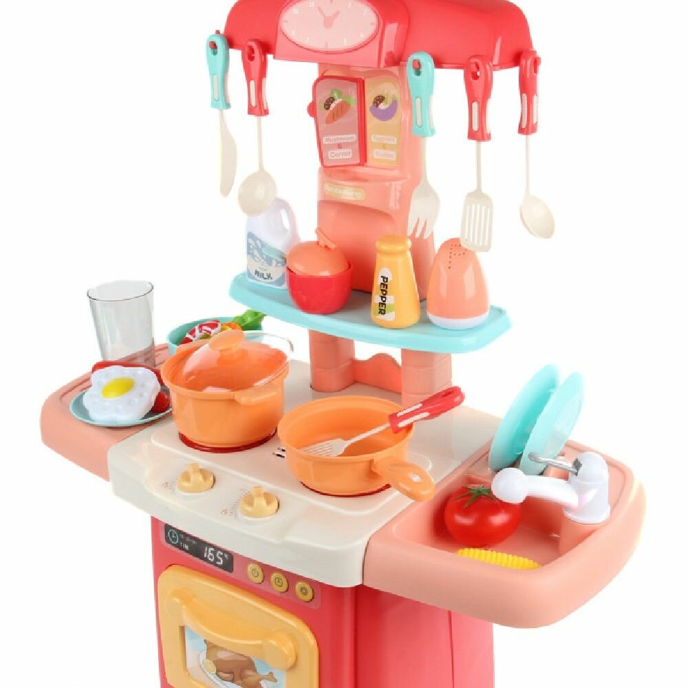 Большая детская игровая кухня с водой для девочек, высота 70 см, холодный пар, свет и звук, 42 предмета