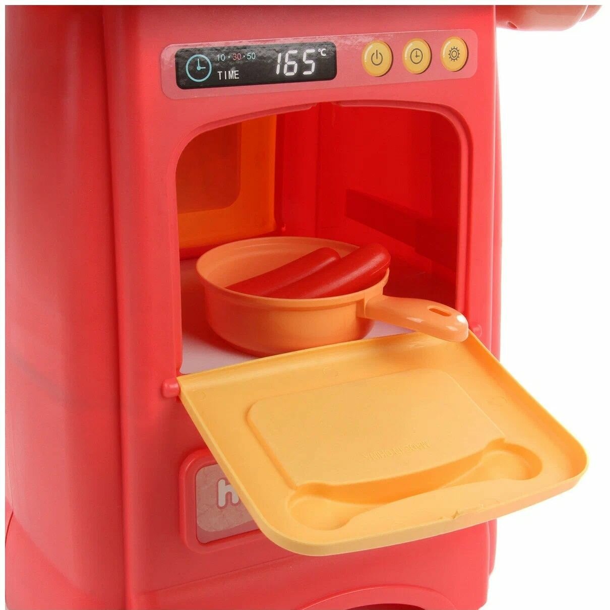 Детская игровая кухня. Свет, звук, с водой, паром, набором посуды и продуктов, ручки крутятся, 77 предметов
