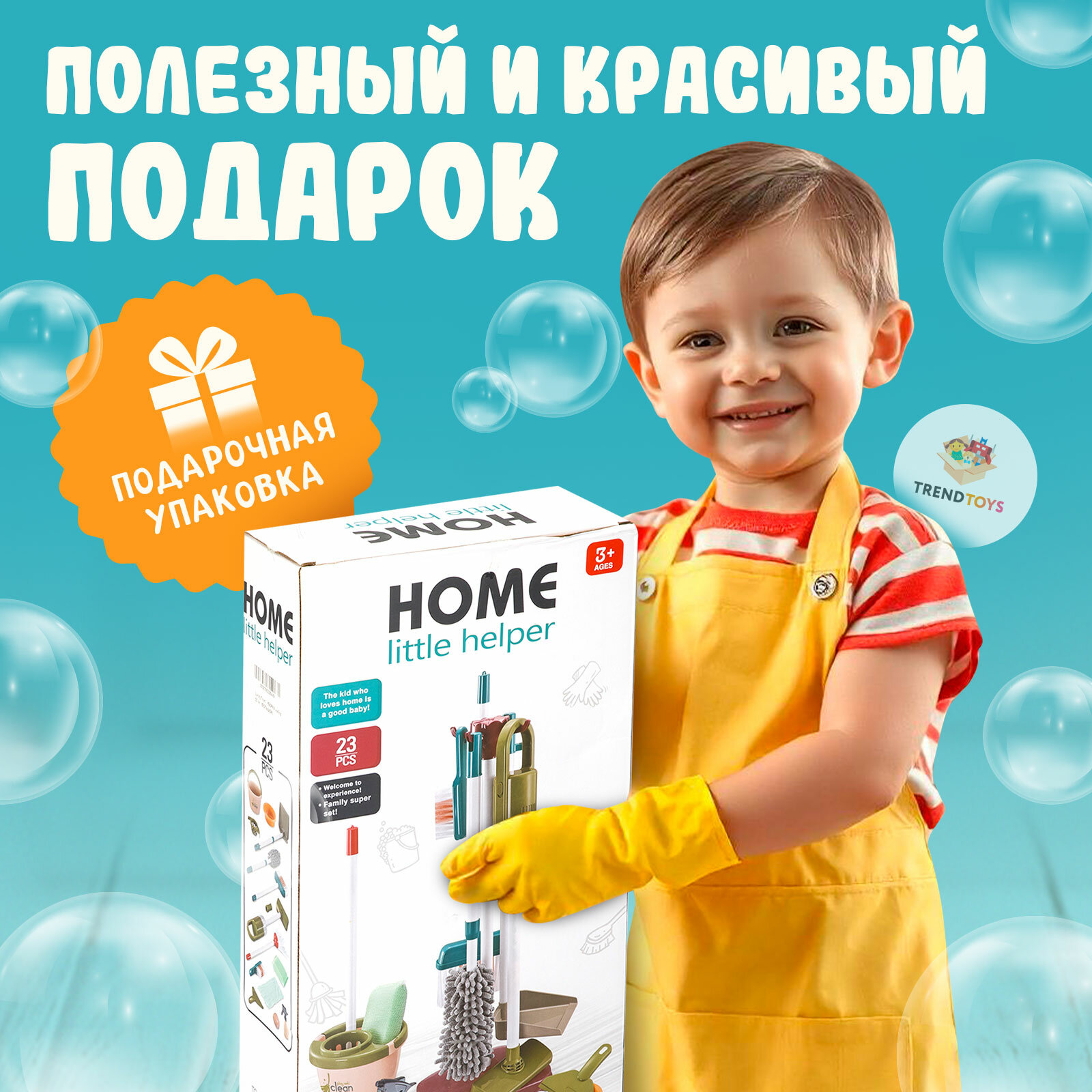 | В комплекте | ведро, пакетик с имитацией мусора, принадлежности для уборки, пылесос, совок, тазик, швабра, щетка |