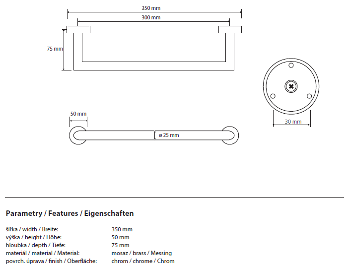 Поручень Bemeta Оmega, арт. 104307611, хром, 35 см