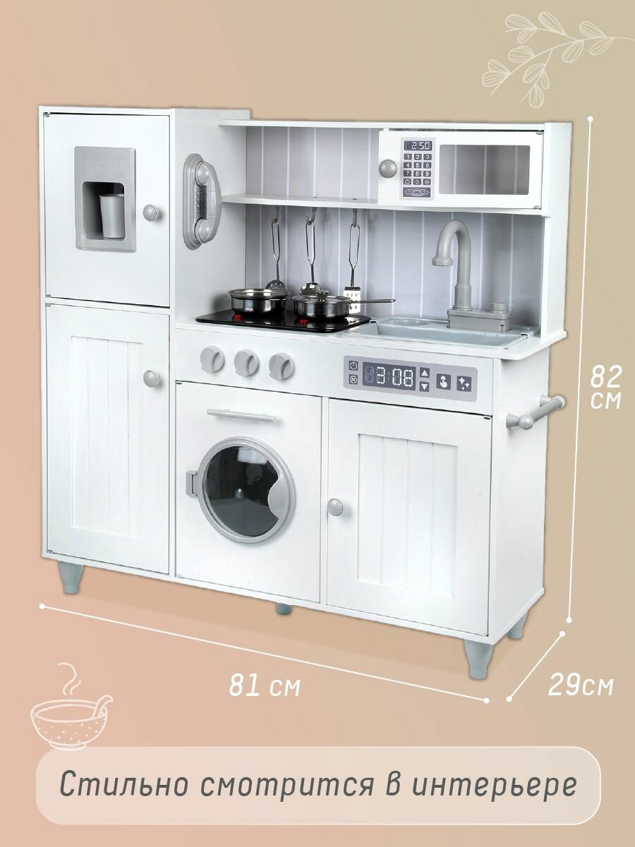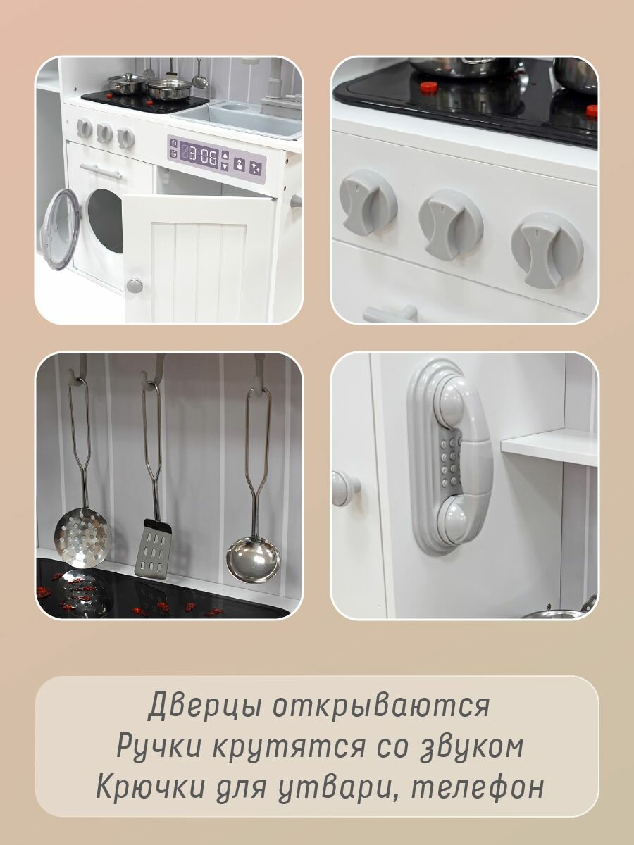 Купить Детская деревянная кухня "Амели" со светом и звуком, Lisa Doll / Игровая кухня с посудой и аксессуарами для детей