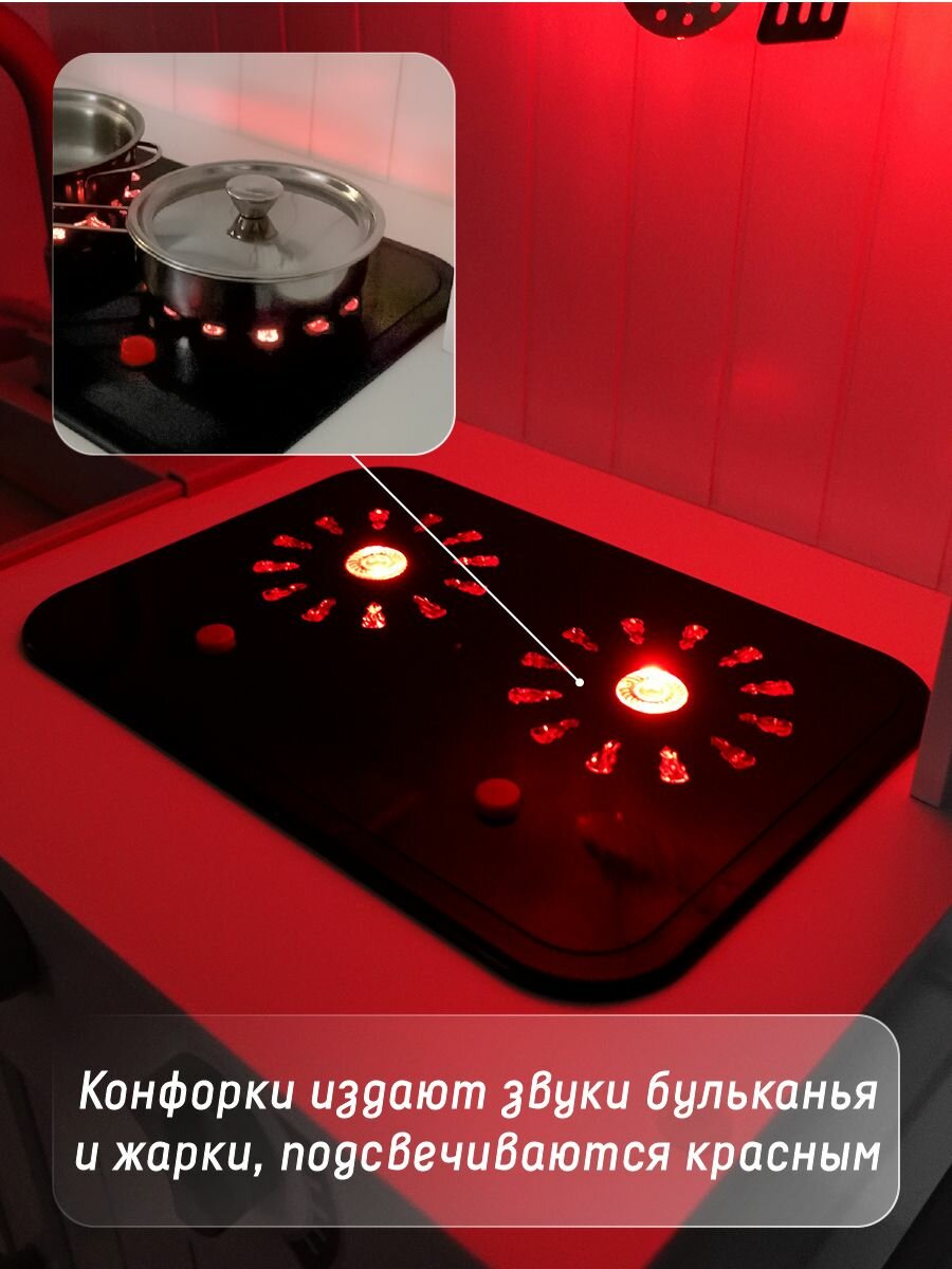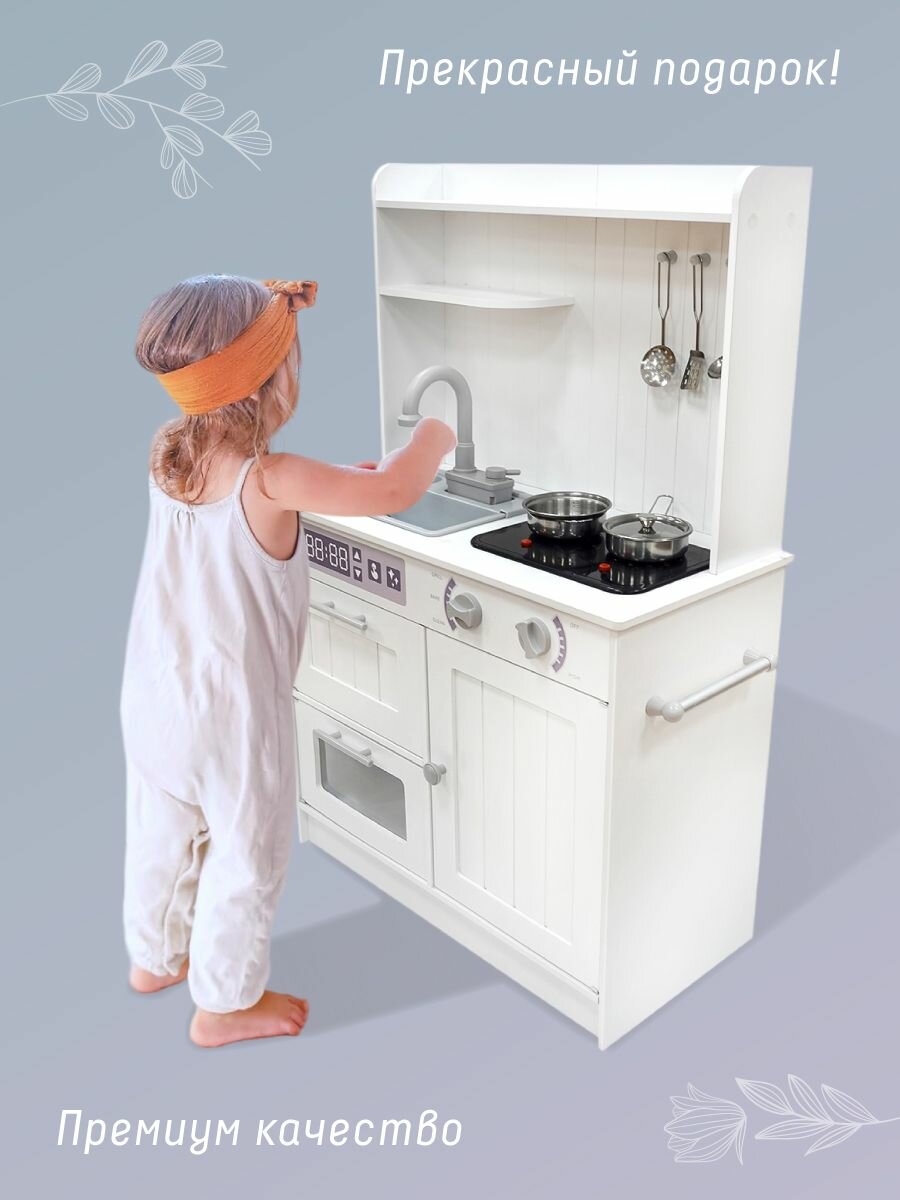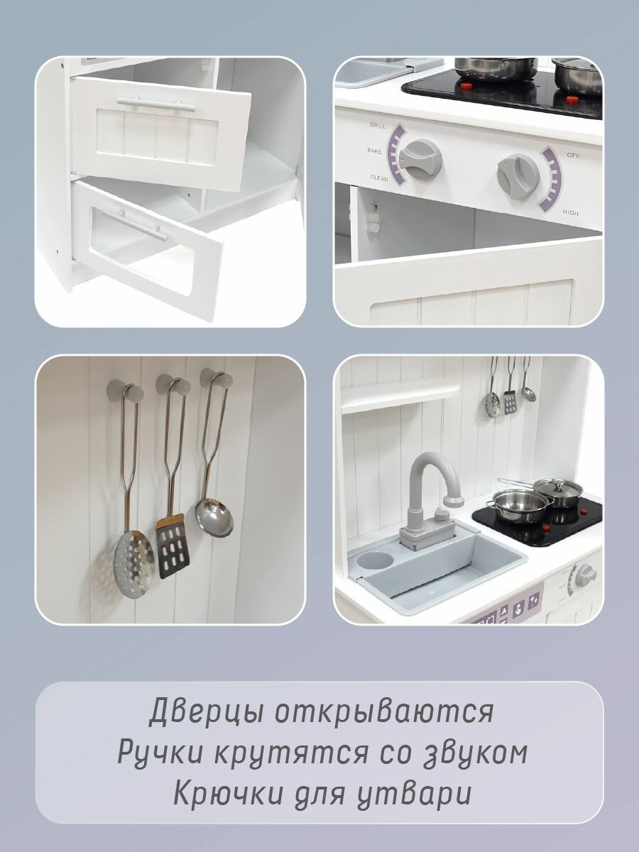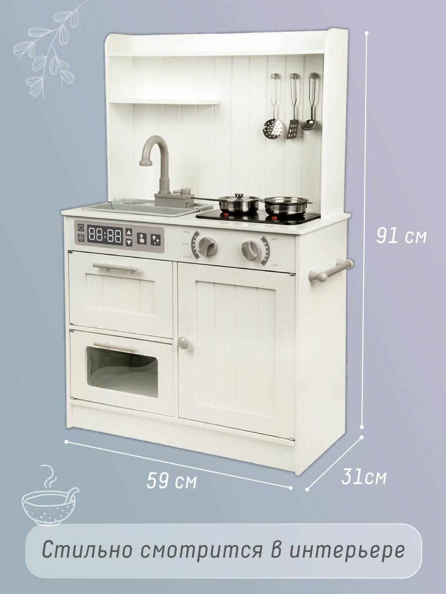 Купить Детская деревянная кухня "Кьюви" со светом и звуком, Lisa Doll / Игровая кухня с посудой и аксессуарами для детей