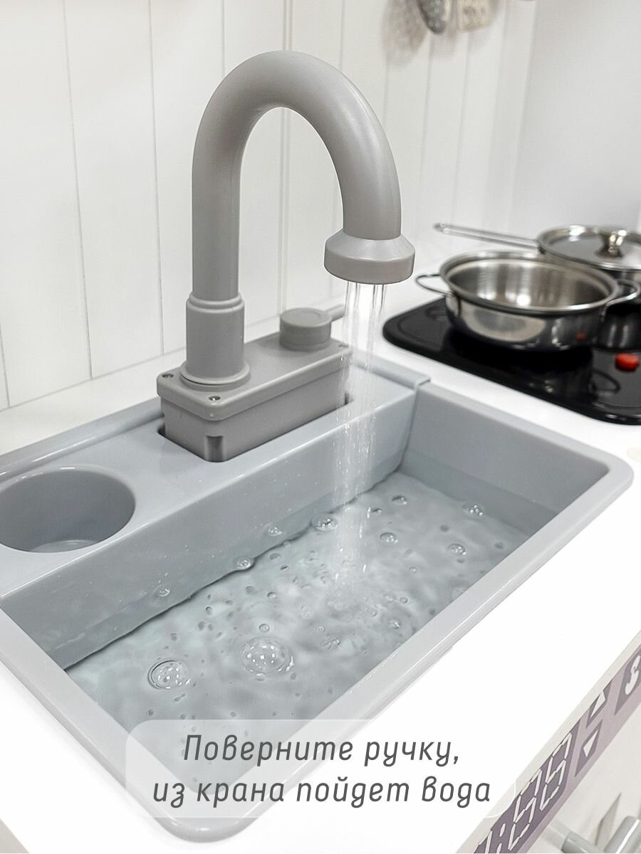 Детская деревянная кухня "Лави" с водой, светом и звуком, Lisa Doll / Игровая кухня с посудой и аксессуарами для детей