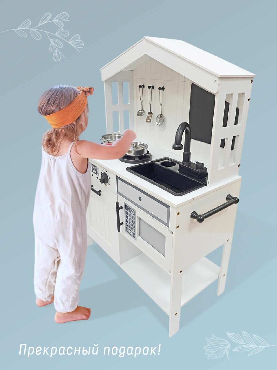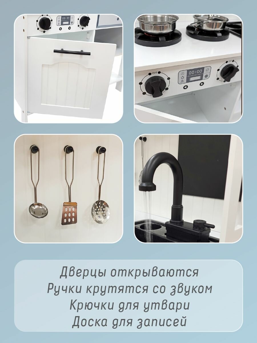 Купить Детская деревянная кухня "Маффи" со светом и звуком, Lisa Doll / Игровая кухня с посудой и аксессуарами для детей