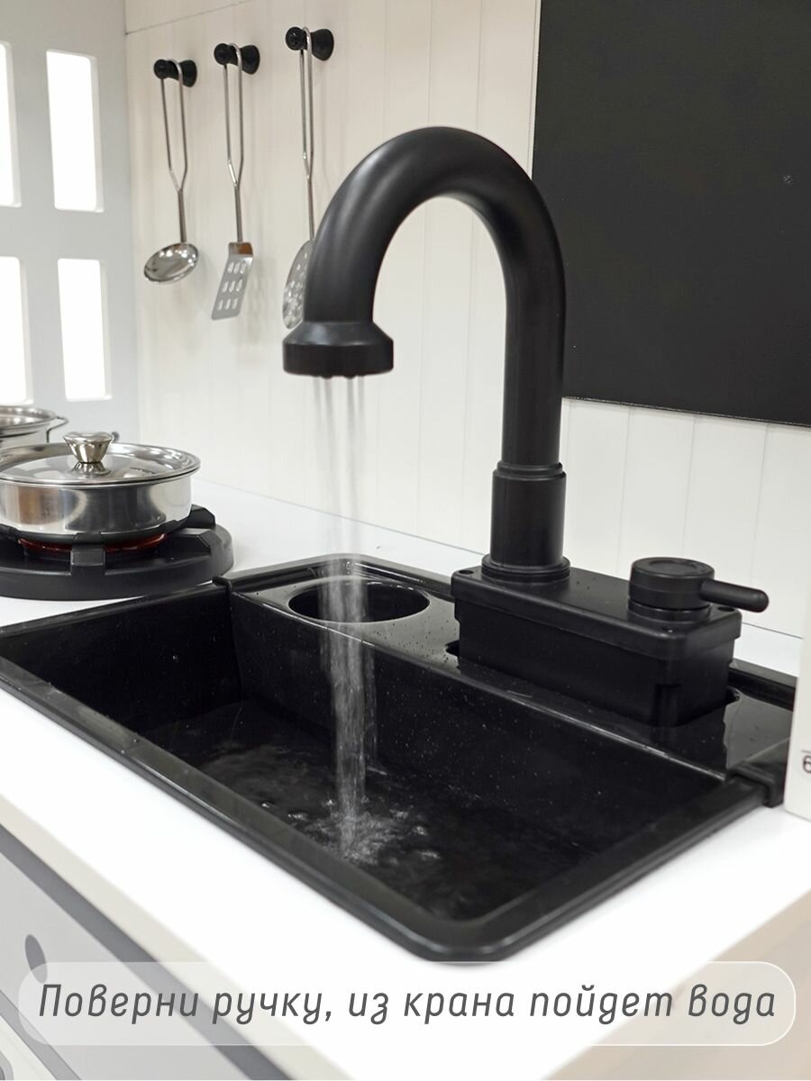 Детская деревянная кухня "Лави" с водой, светом и звуком, Lisa Doll / Игровая кухня с посудой и аксессуарами для детей