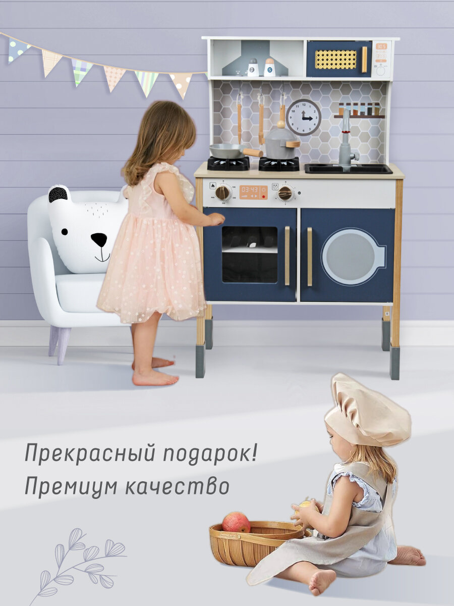 Детская деревянная кухня "Маффи" со светом и звуком, Lisa Doll / Игровая кухня с посудой и аксессуарами для детей