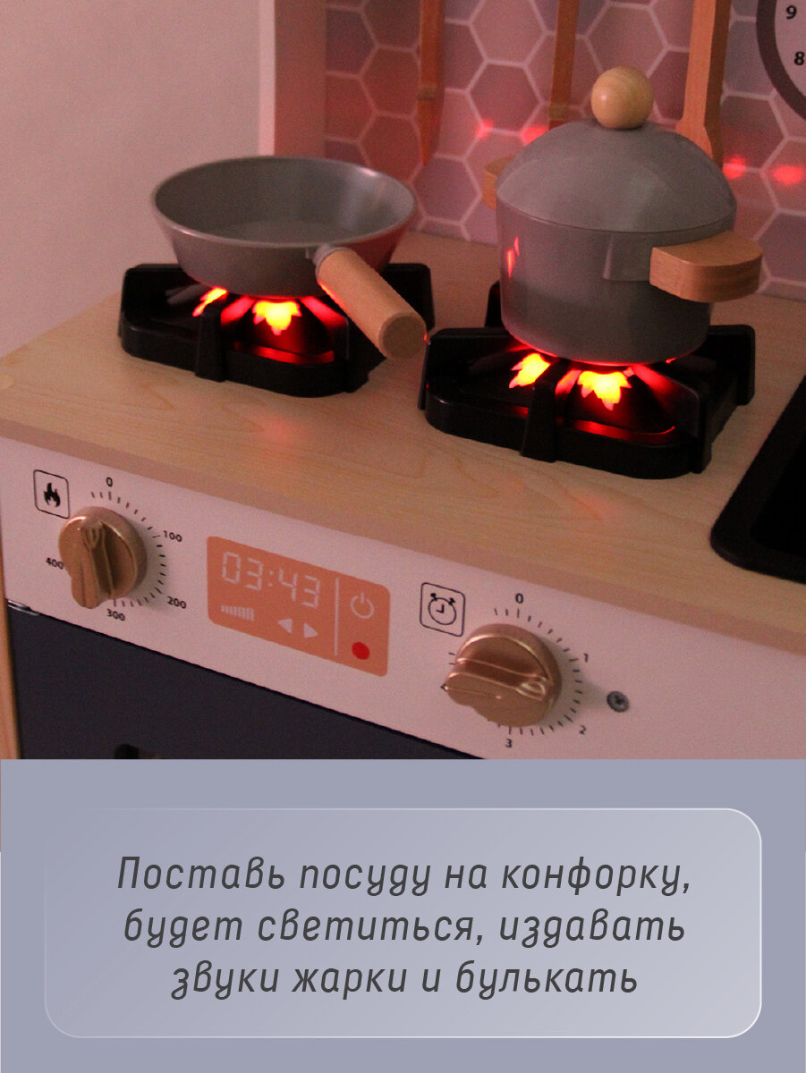 Детская деревянная кухня "Кьюви" со светом и звуком, Lisa Doll / Игровая кухня с посудой и аксессуарами для детей