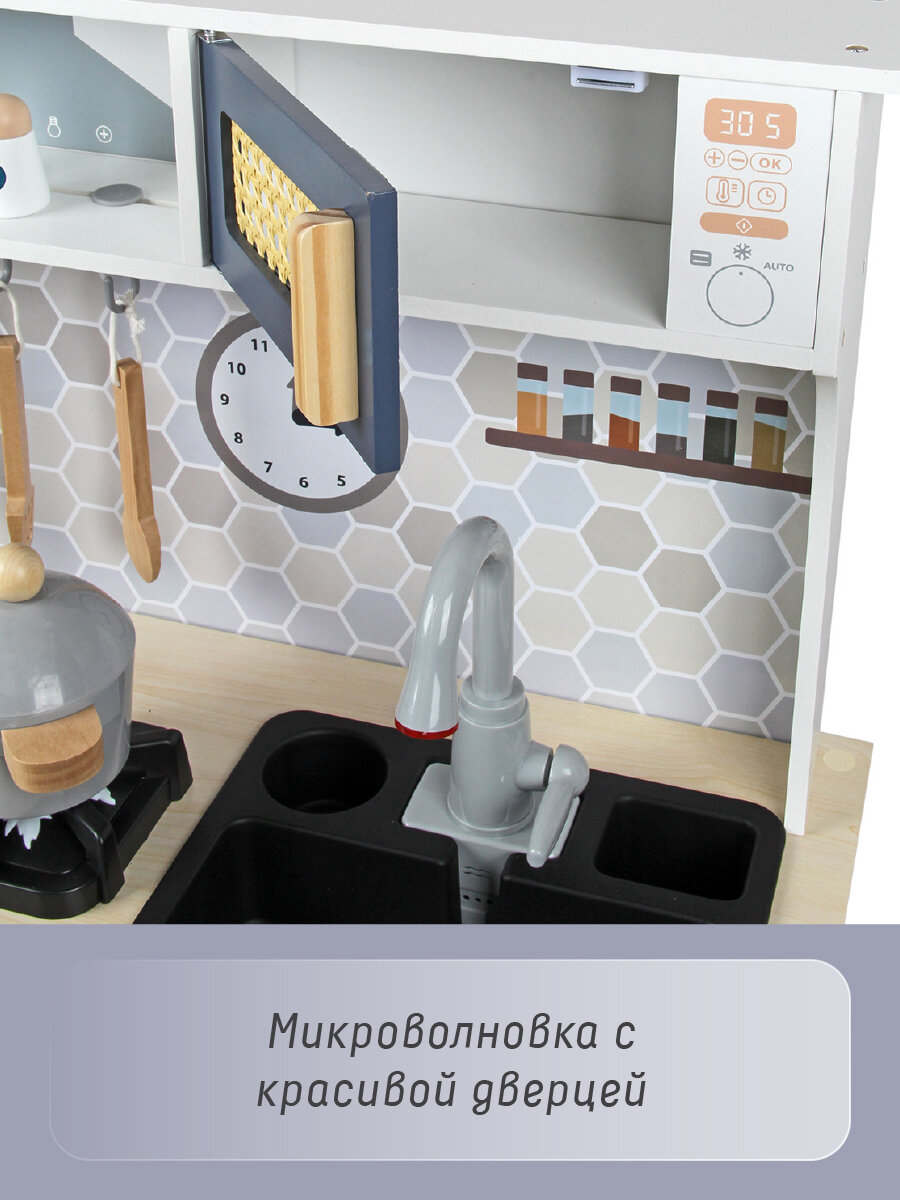 Детская деревянная кухня "Лави" с водой, светом и звуком, Lisa Doll / Игровая кухня с посудой и аксессуарами для детей