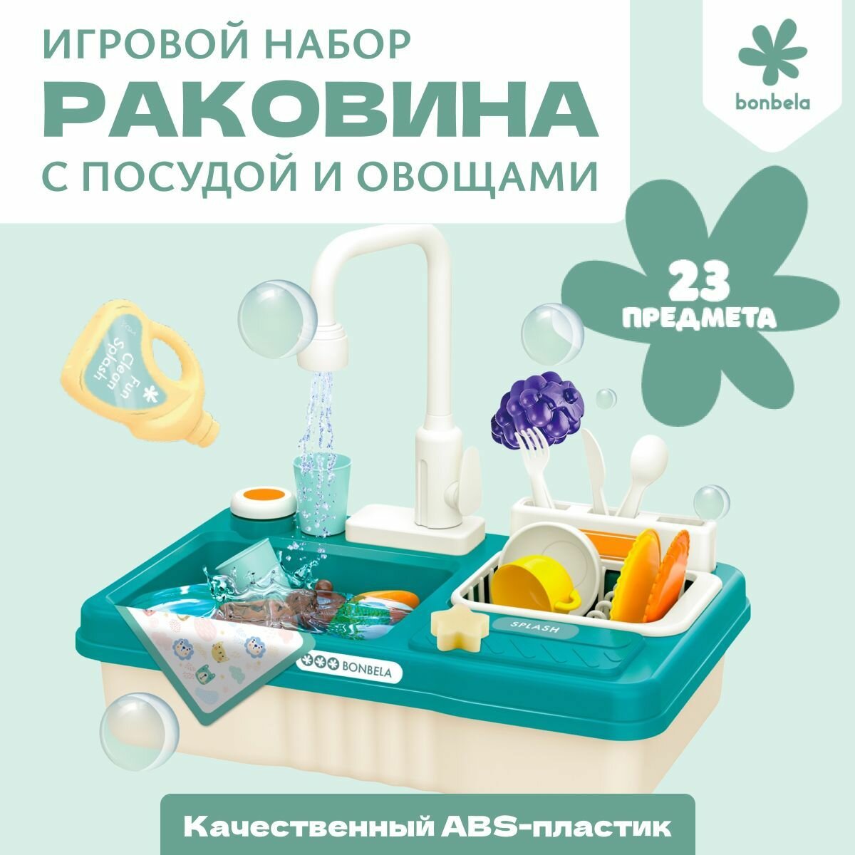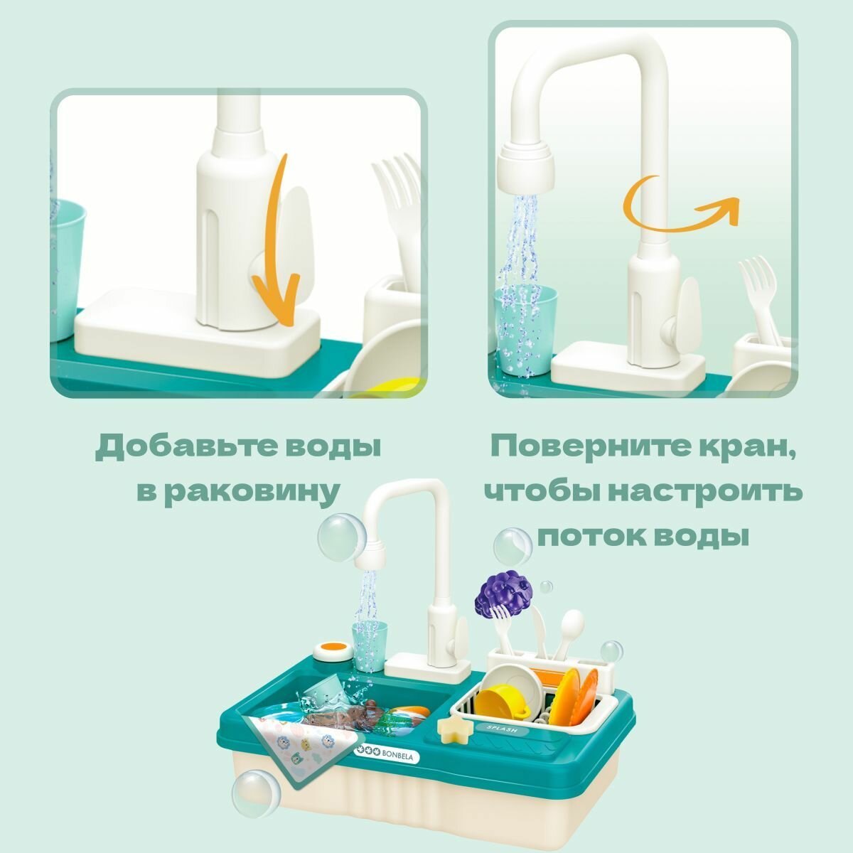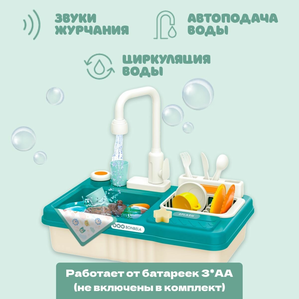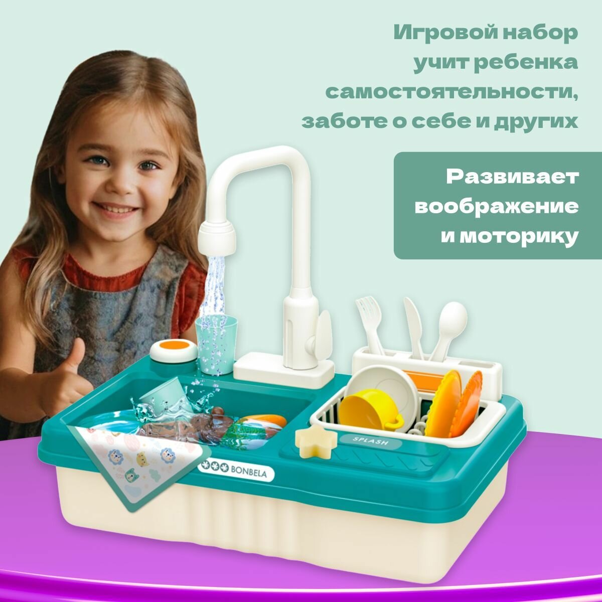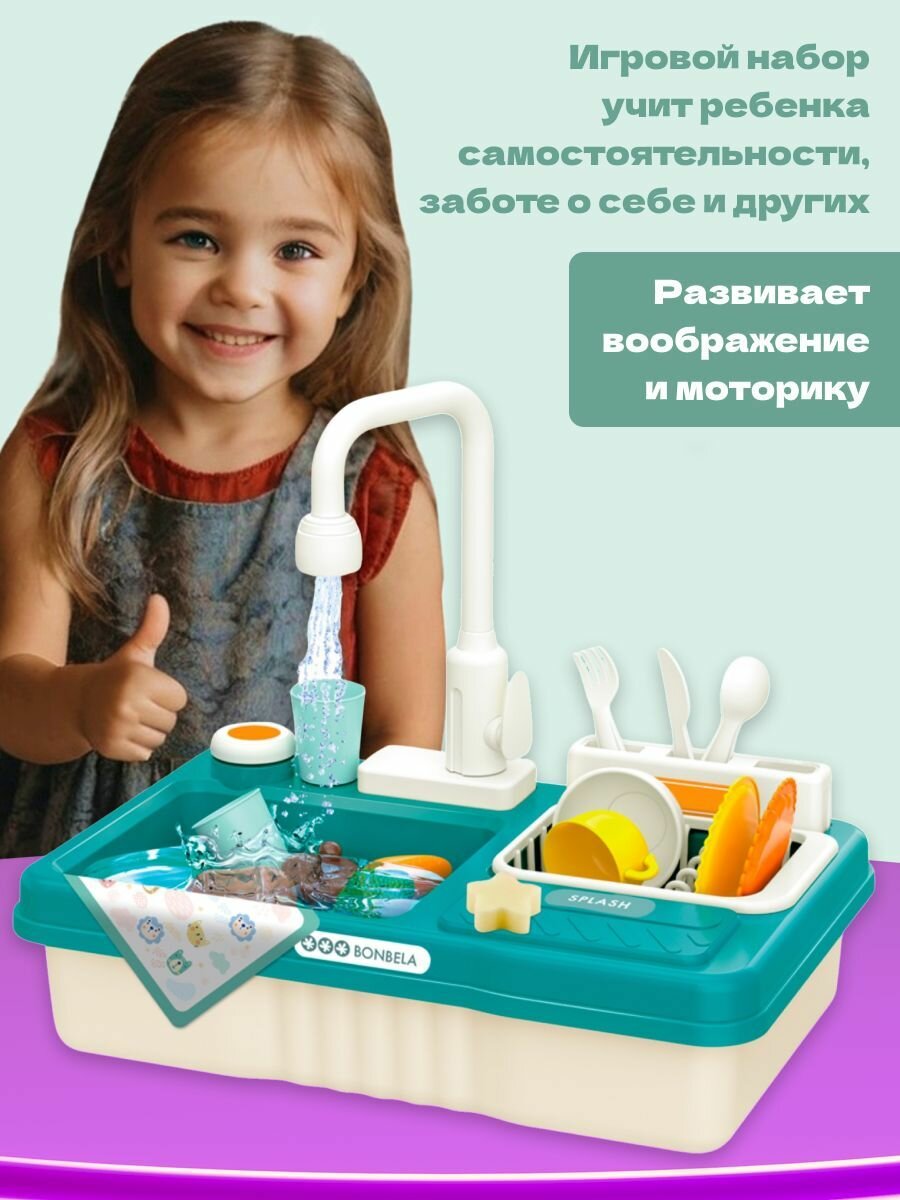 СохранитьКухня детская игровая 42см с водой (раковина-мойка) Bonbela, 23 предмета интересное: