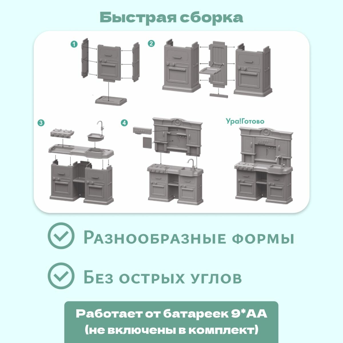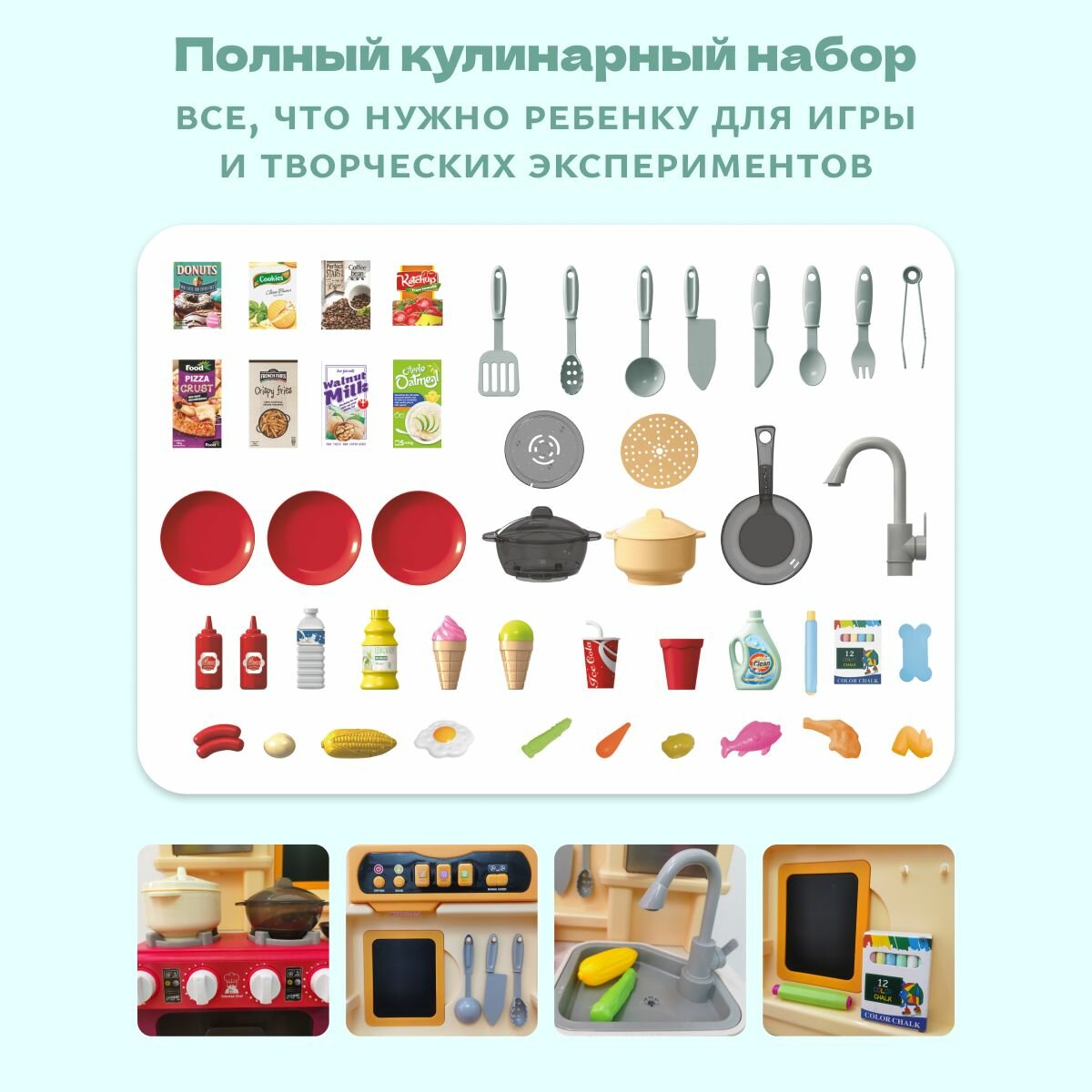 СохранитьКухня детская игровая Bonbela 73 предмета (с подачей воды, со звуком, светом, имитация пара), бордовая интересное: