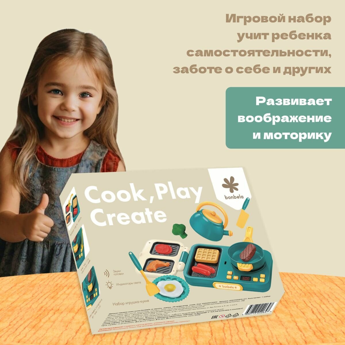 СохранитьКухня детская игровая Bonbela (плита со звуком и светом + гриль), 38 предметов интересное:
