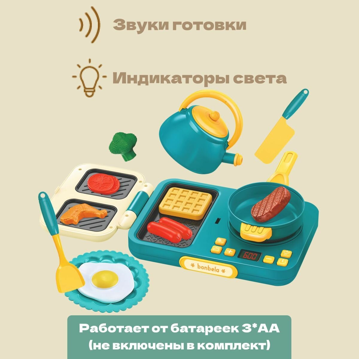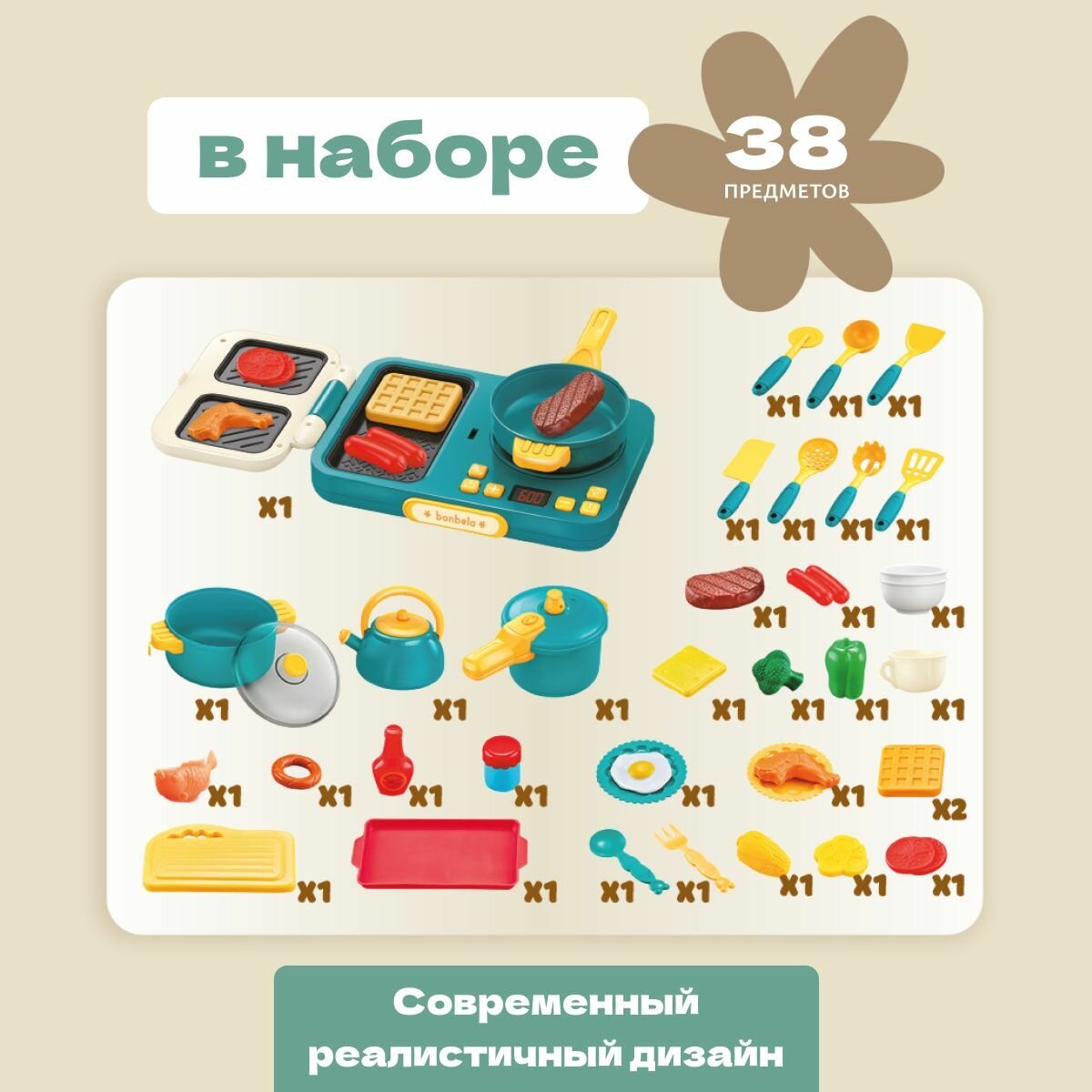 Купить Кухня детская игровая Bonbela (плита со звуком и светом + гриль), 38 предметов