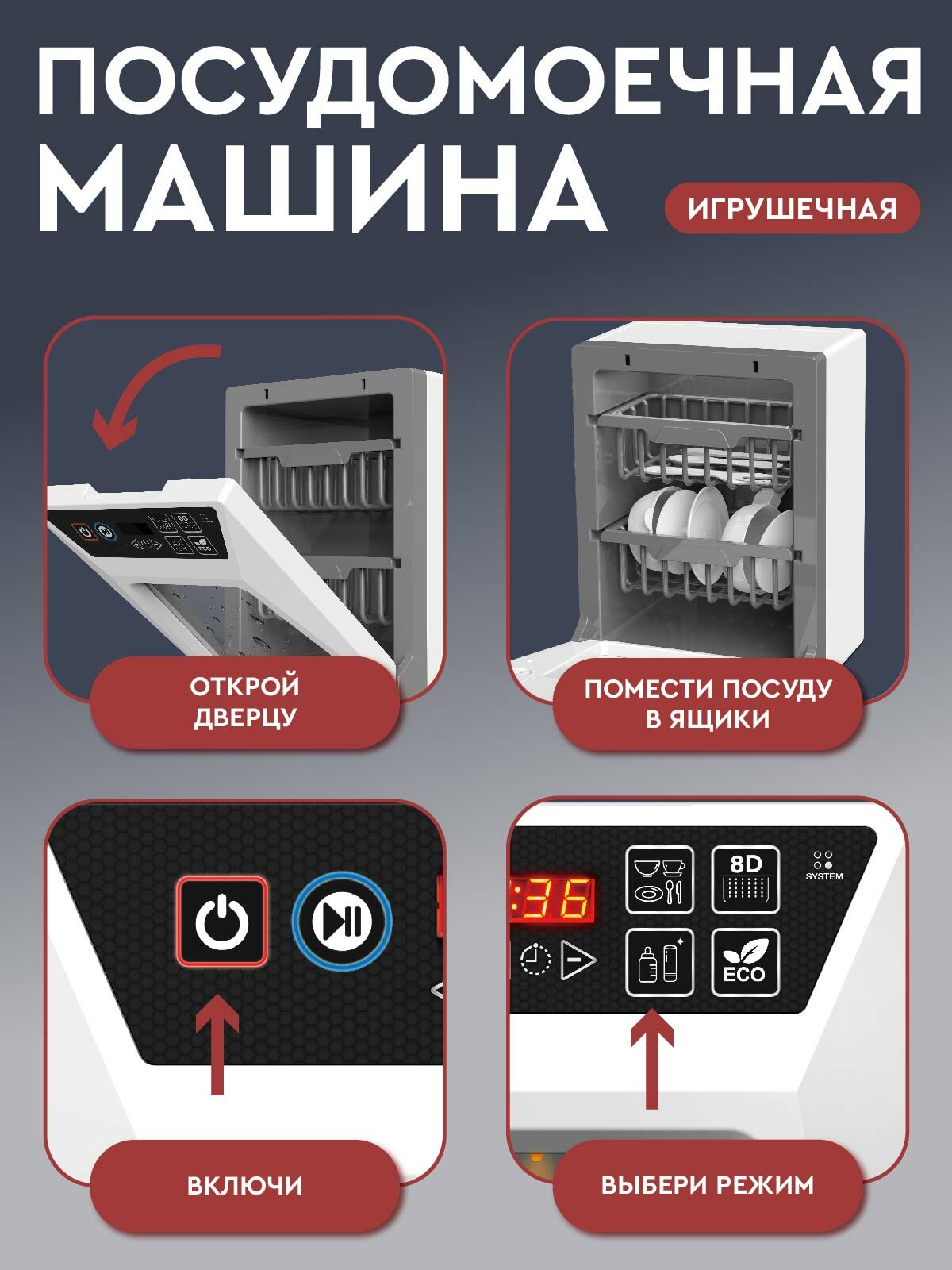 Ниже Вы можете прочитать отзывы на Игрушечная бытовая техника посудомоечная машина, серо-белая серия, ролевые игры, обучающая игрушка, JB0213738, ознакомится с подробными характеристиками, посмотреть интересные обзоры и фотографии на Игрушечная бытовая техника посудомоечная машина, серо-белая серия, ролевые игры, обучающая игрушка, JB0213738.