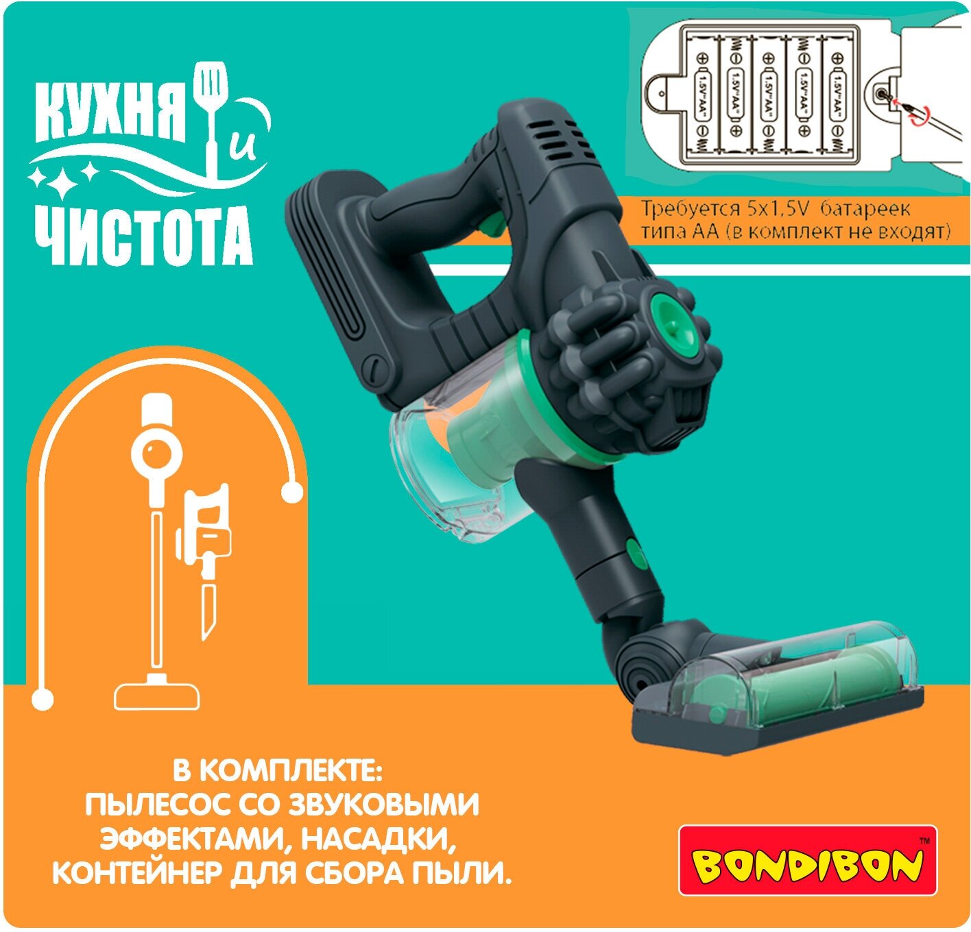 Набор игровой, набор для девочек, Bondibon Пылесос вертикальный детский со звуком Кухня и Чистота интересное: