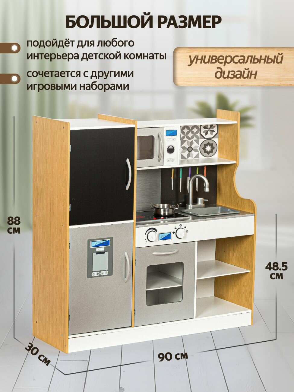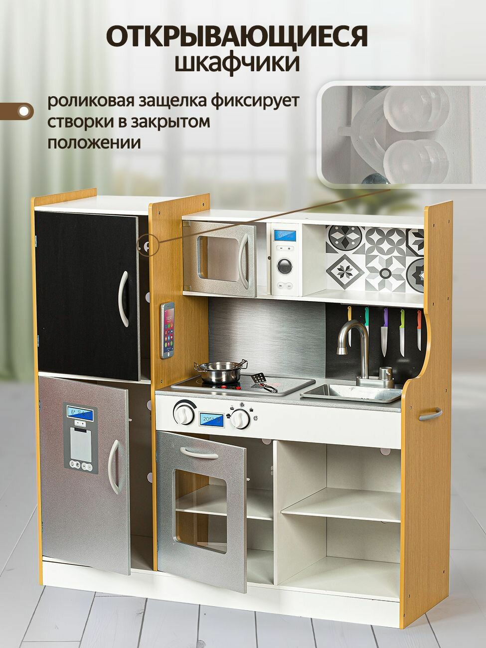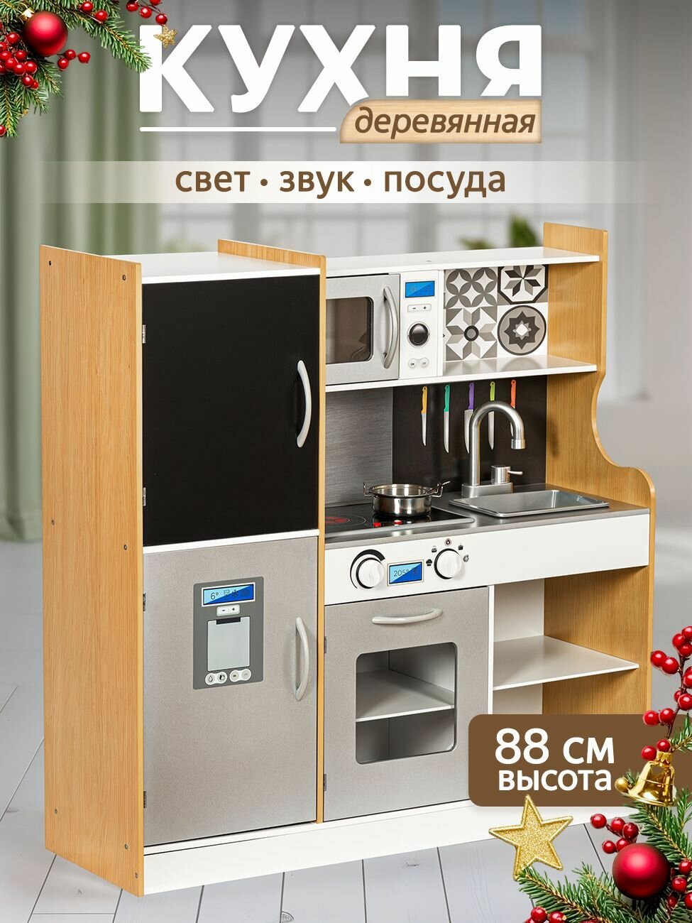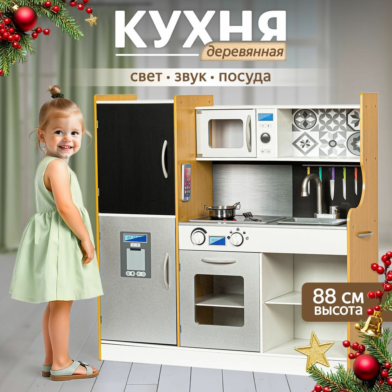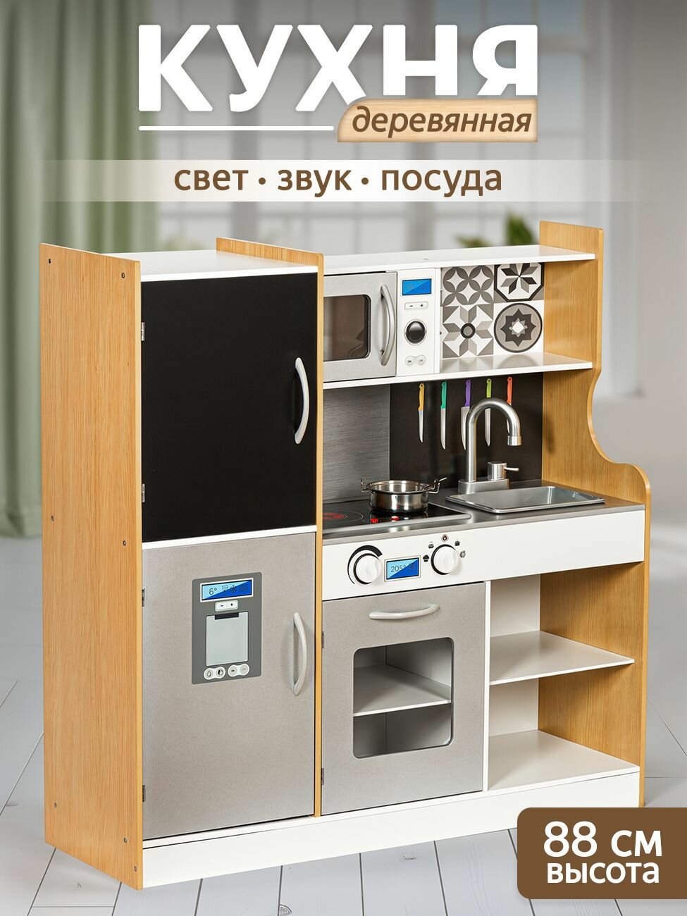 Купить Кухня детская игровая деревянная UT 88 см с посудкой, свет, звук