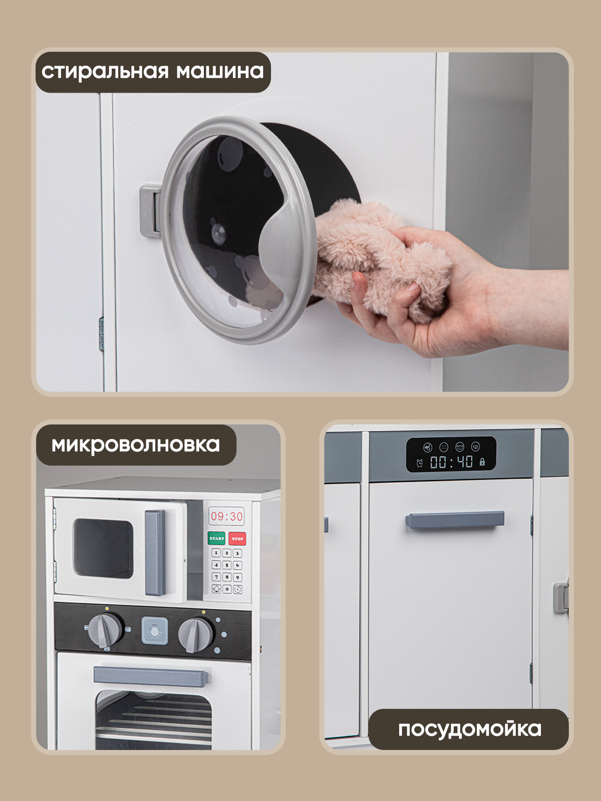 СохранитьКухня детская игровая, деревянная 90 см, с аксессуарами, свет, звук, белая интересное: