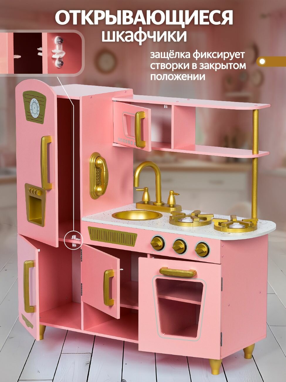 Кухня детская игровая деревянная UT 85см, свет, звук