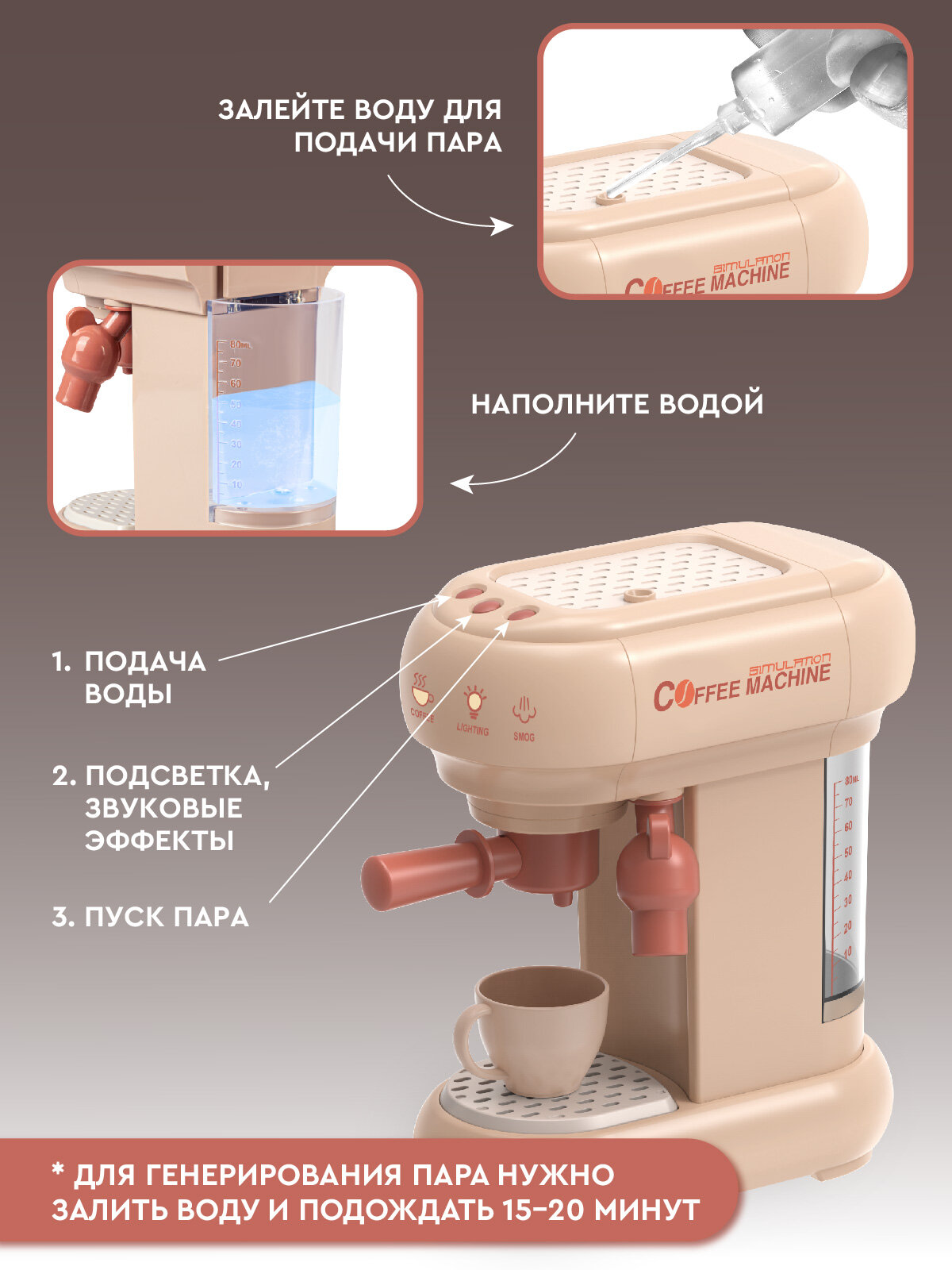 СохранитьКофемашина с паром, игрушечная бытовая техника, ролевые игры, обучающая игрушка, звук, свет, бежевый, JB0213019 интересное: