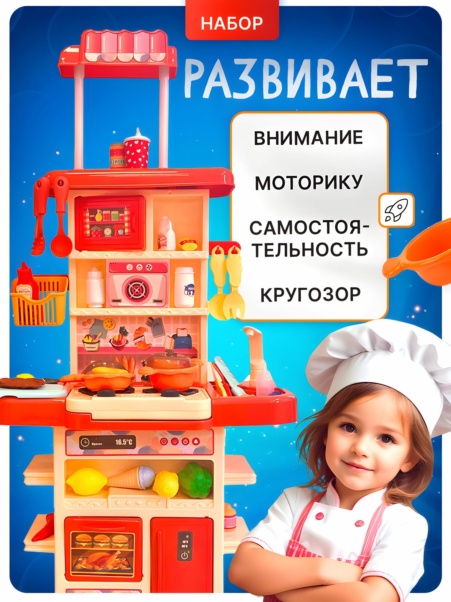Ниже Вы можете прочитать отзывы на Кухня детская игрушечная 83 см с водой, паром и посудой и звуком, большой набор игрушек SHARKTOYS / для девочек-3, ознакомится с подробными характеристиками, посмотреть интересные обзоры и фотографии на Кухня детская игрушечная 83 см с водой, паром и посудой и звуком, большой набор игрушек SHARKTOYS / для девочек-3.