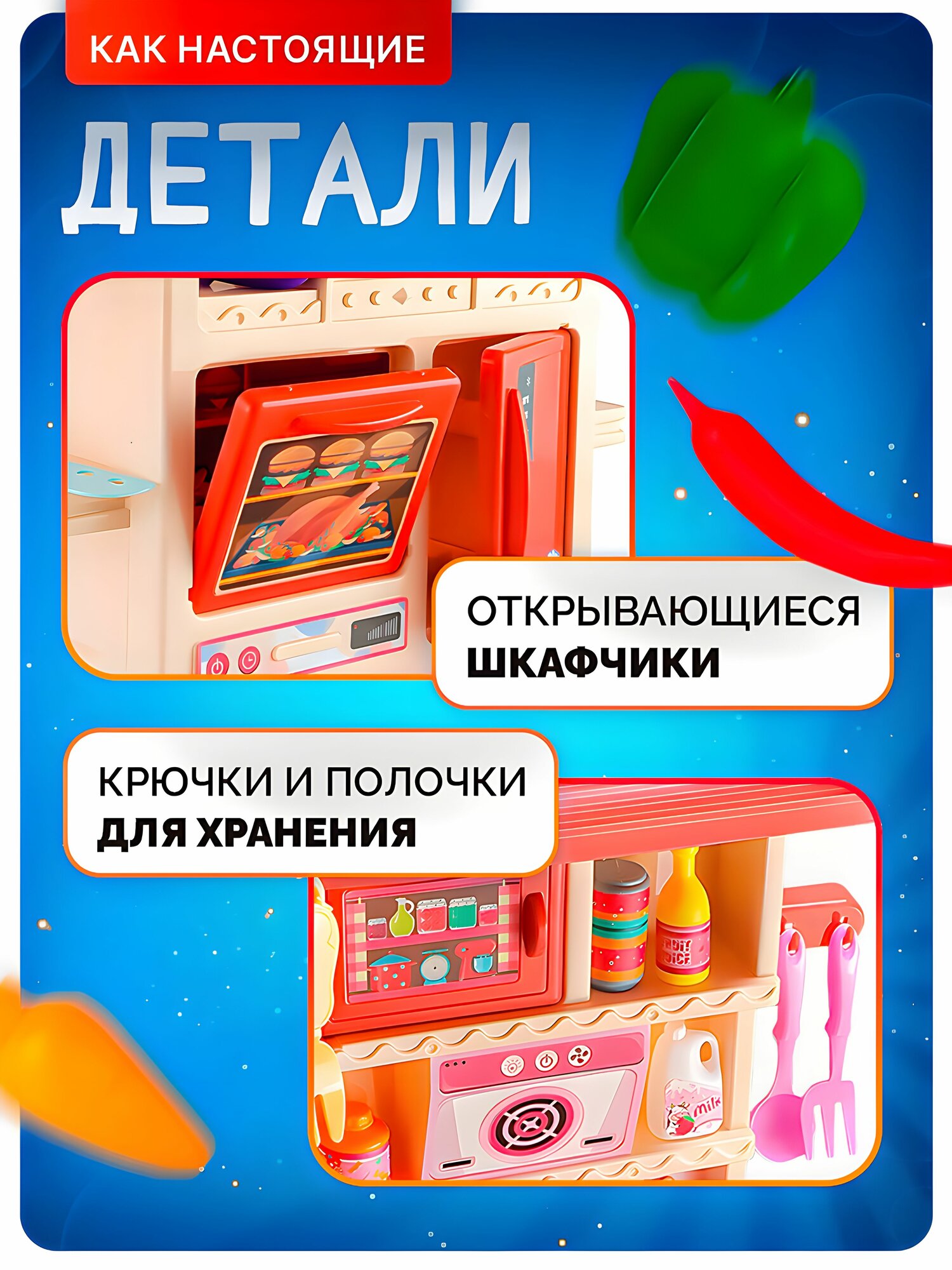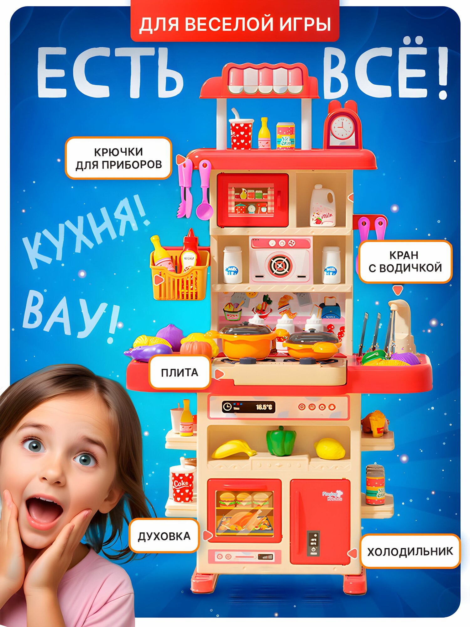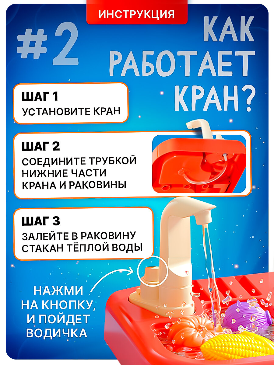 Кухня детская игрушечная 83 см с водой, паром и посудой и звуком, большой набор игрушек SHARKTOYS / для девочек-3 интересное:
