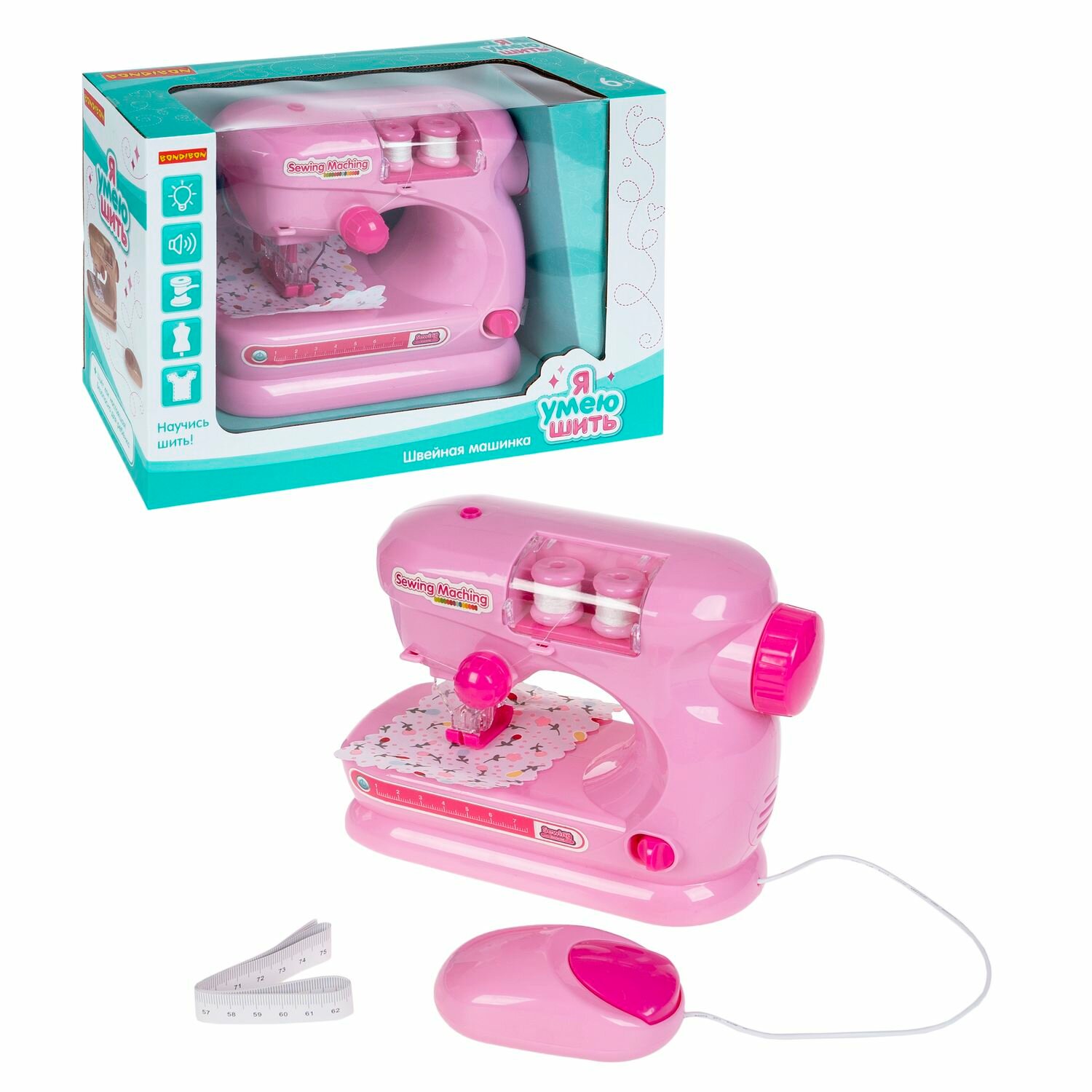 Игр. пластм. швейная машинка Bondibon «Я умею шить», малиновая, BOX интересное: