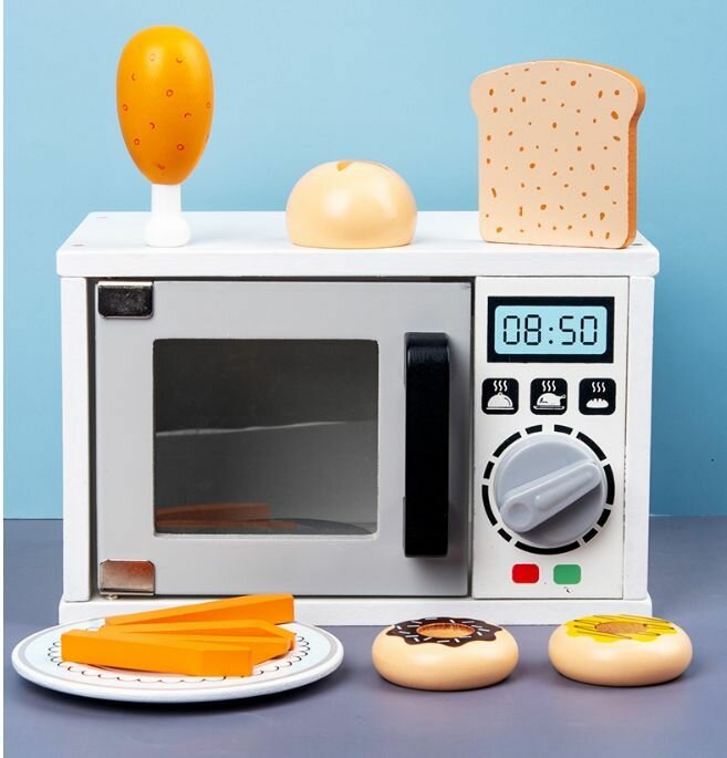 Купить Деревянный игровой набор "Микроволновка"/ Игрушечная еда/ детская посуда