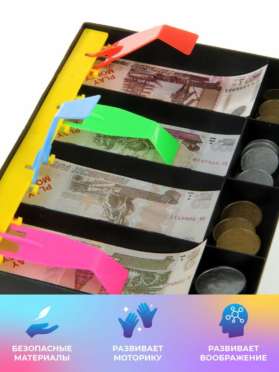Детский игровой набор касса с деньгами "Рубли", Veld Co / Игрушечные деньги и монеты для детей / Кассовый аппарат интересное: