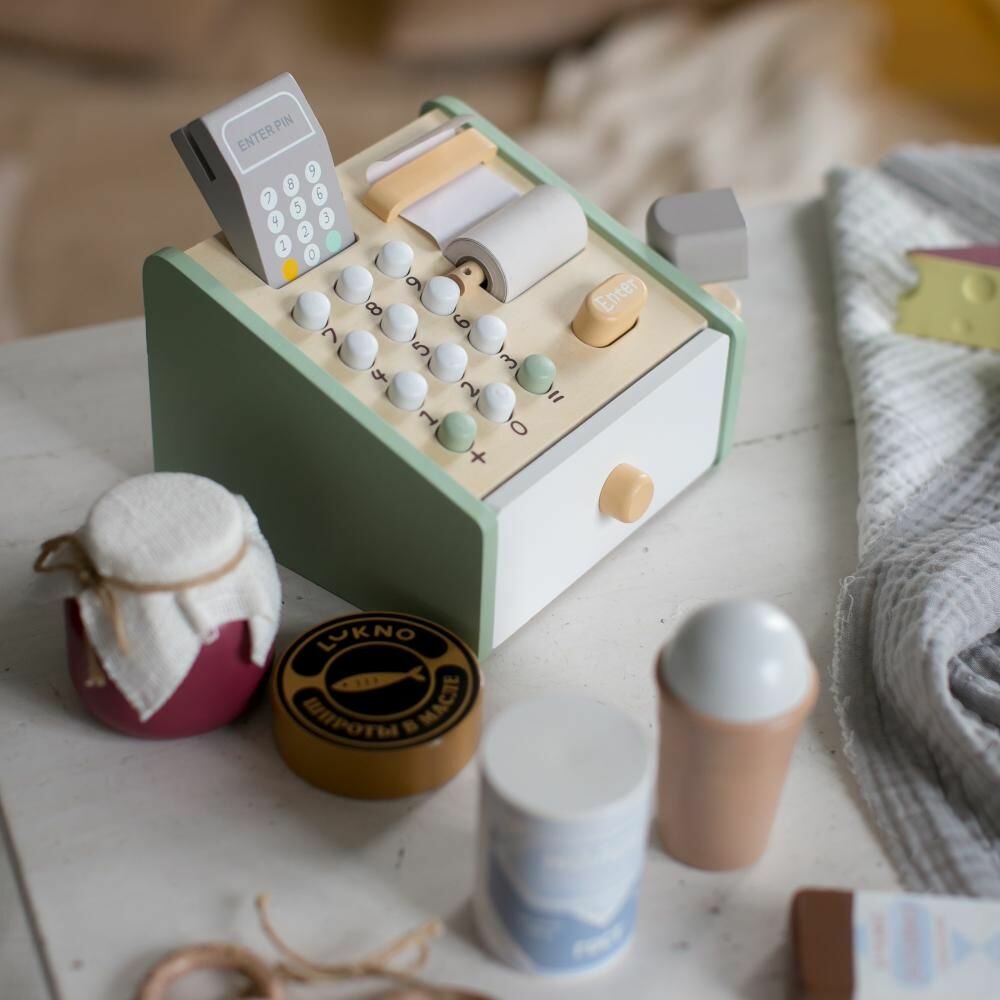 Купить Деревянная игрушка касса детская, супермаркет, игровой набор LUKNO