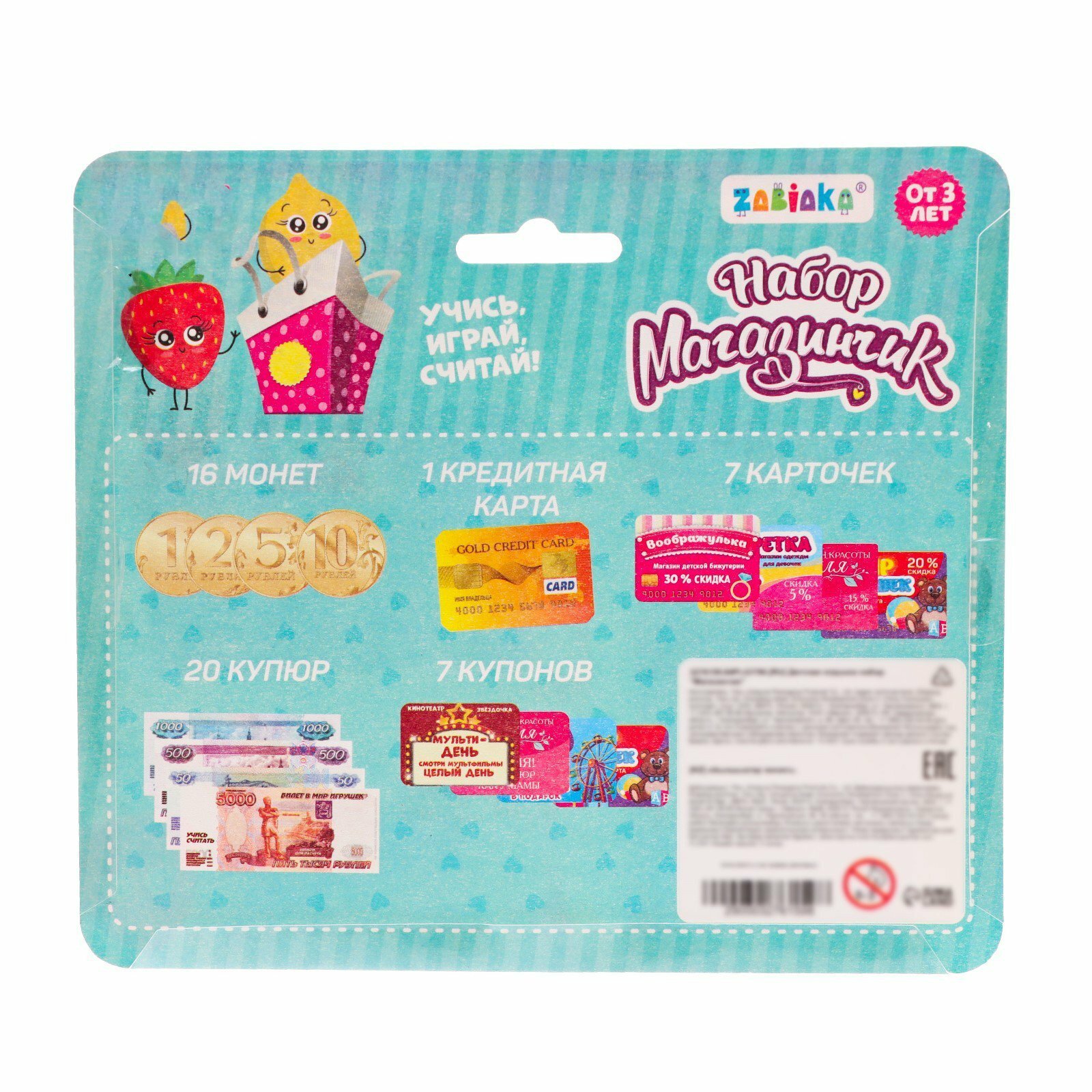 Игрушечный набор Магазинчик : бумажные купюры, монеты, карточки, купоны интересное:
