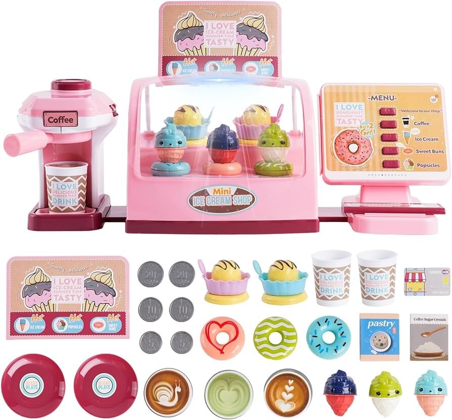 Купить Oubaoloon Набор Кафе Мороженое 28 предметов, со светом и звуком, розовый MW1181