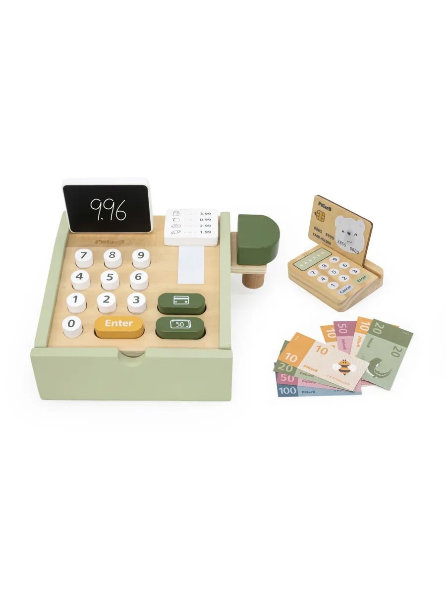 Купить Игровой набор касса с аксессуарами деревянная 44244