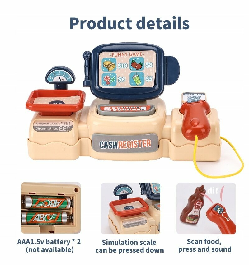 BeiBe Good Кассовый аппарат с аксессуарами 25 предметов, звук, розовый 888J с 3 лет