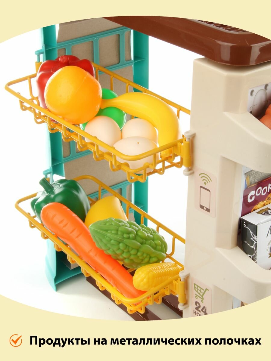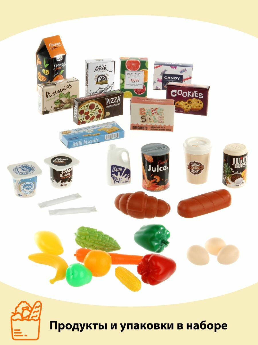Купить Детский игровой набор Супермаркет, Veld Co / Игрушечная касса со светом и звуком / Кассовый прилавок и корзина с продуктами для детей