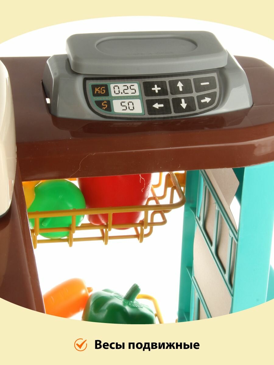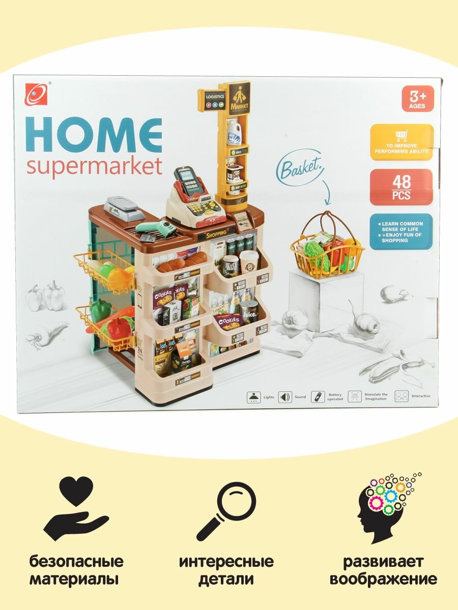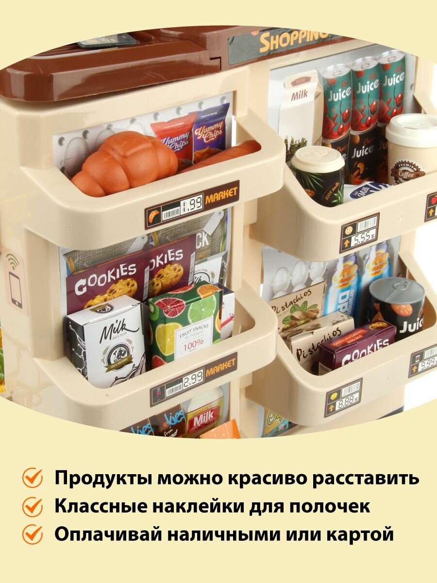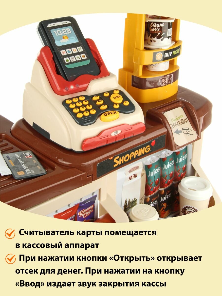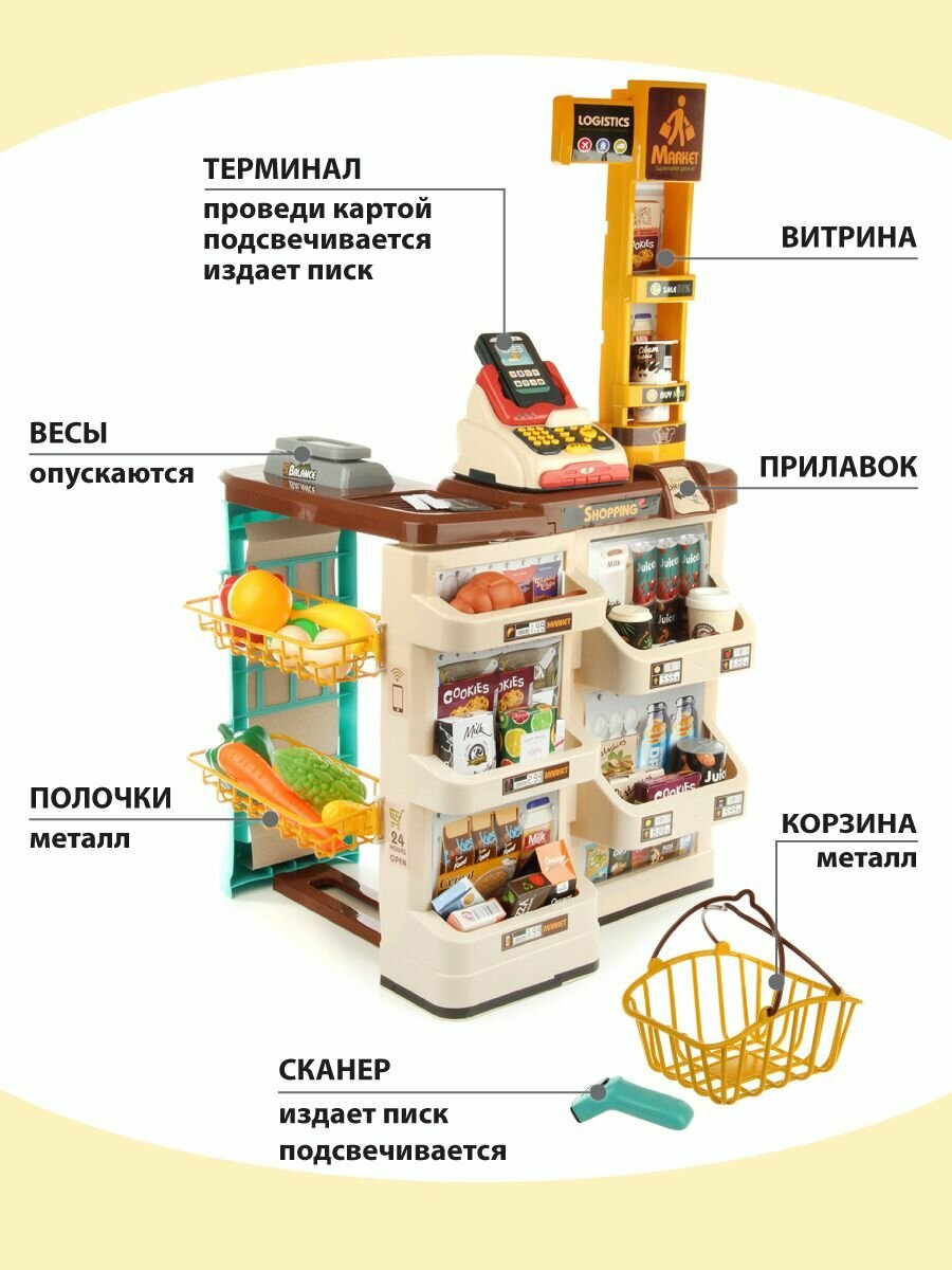 Детский игровой набор Супермаркет, Veld Co / Игрушечная касса со светом и звуком / Кассовый прилавок и корзина с продуктами для детей интересное:
