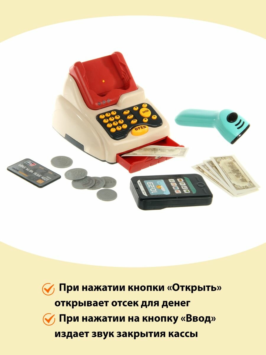 BeiBe Good Кассовый аппарат с аксессуарами 25 предметов, звук, розовый 888J с 3 лет