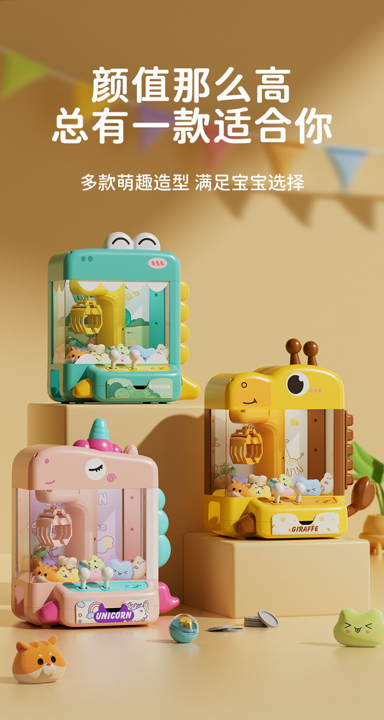 Машина для захвата кукол "Динозавр", 757 Classic Clip Doll Machine, с игровой валютой, шнуром питания, 10 куклами