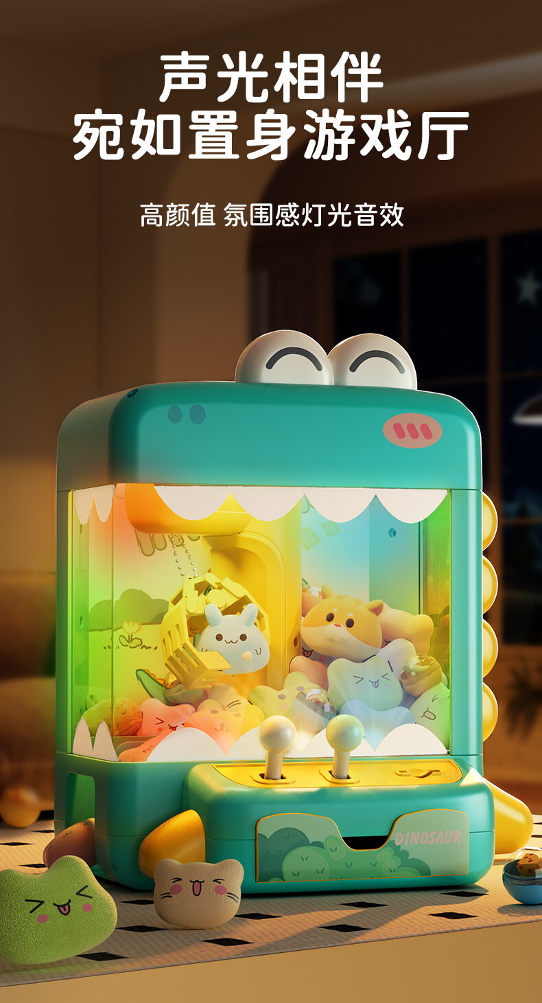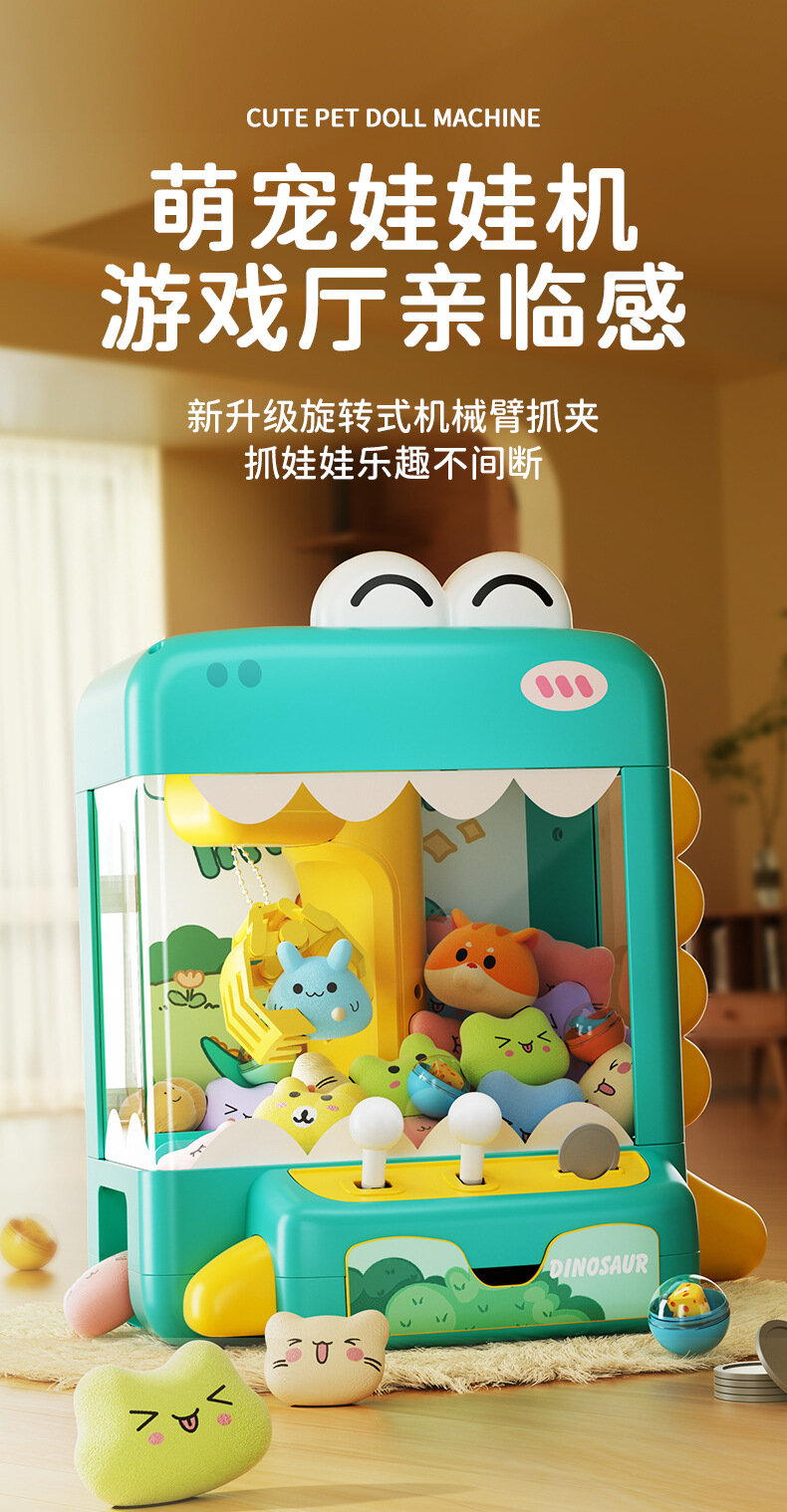 Машина для захвата кукол "Динозавр", 757 Classic Clip Doll Machine, с игровой валютой, шнуром питания, 10 куклами