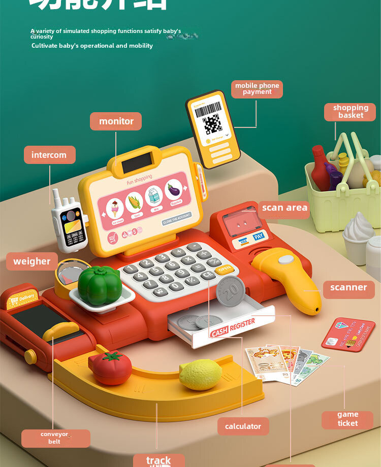 Игрушка-кассовый аппарат, имитация, для детей, распознавание языка, красный интересное: