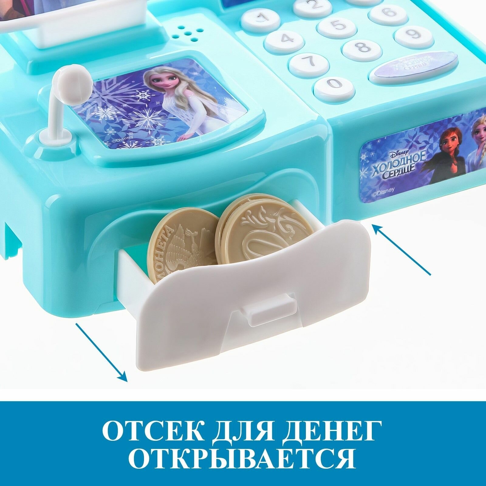 Касса калькулятор обучающая Анна и Эльза, Холодное сердце, свет и звук интересное: