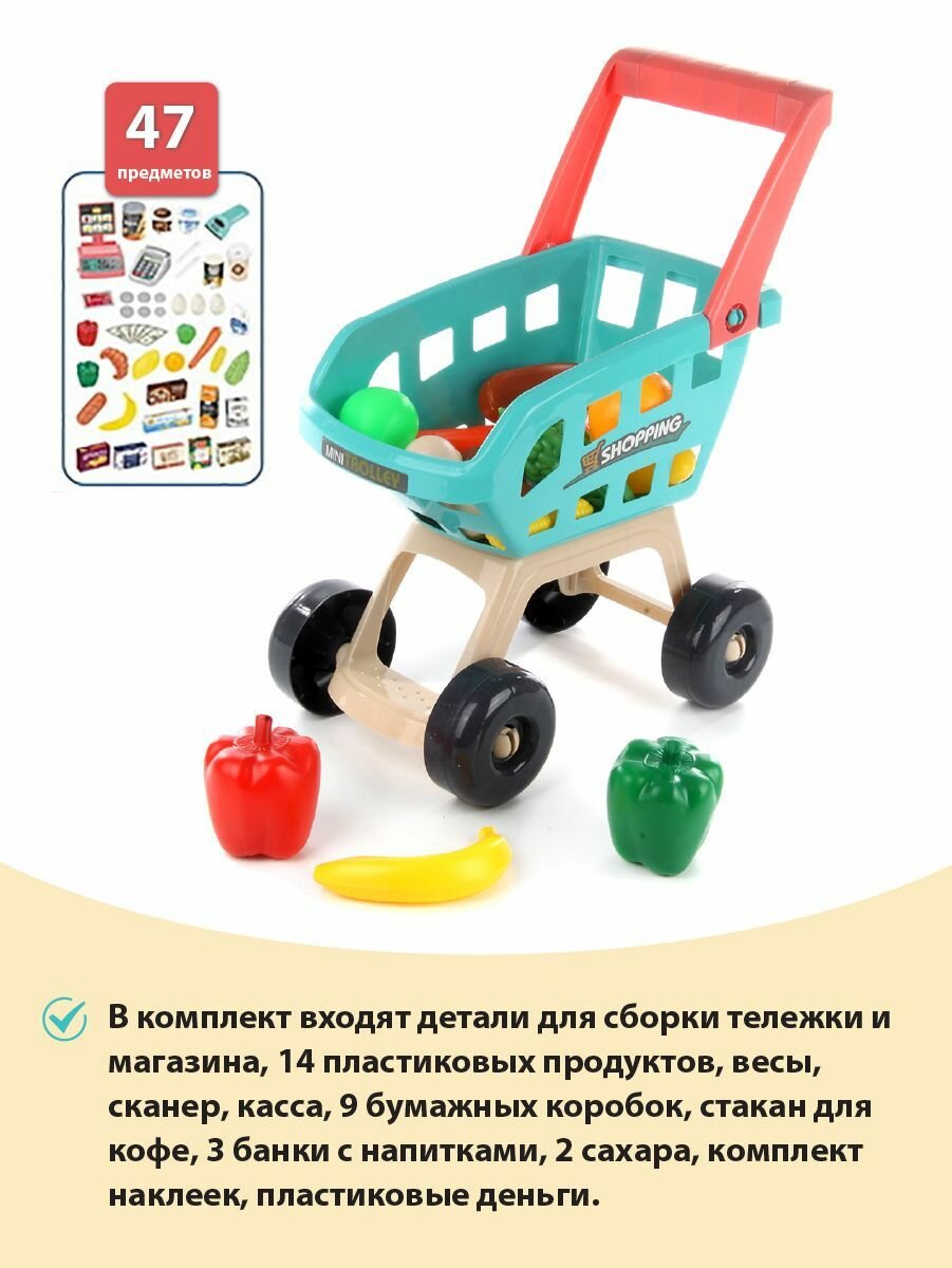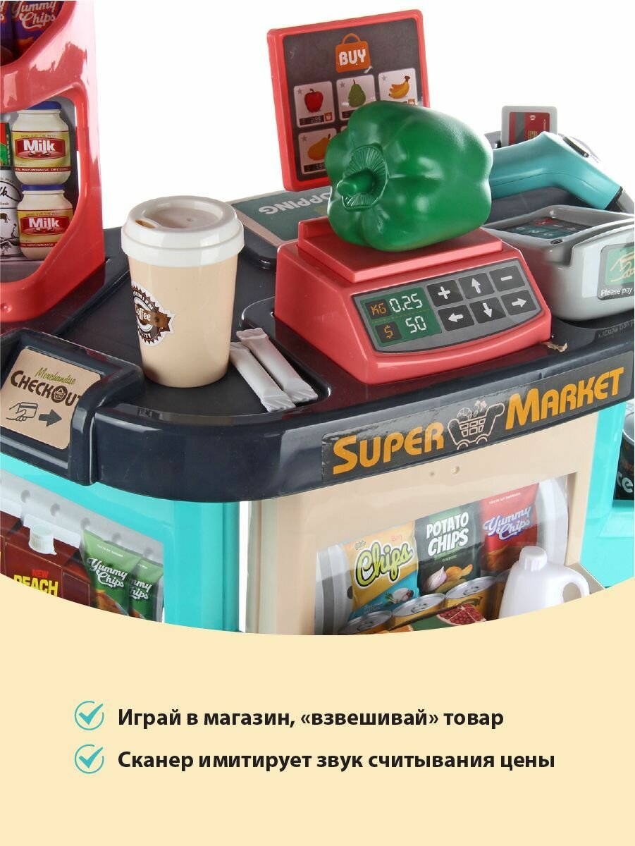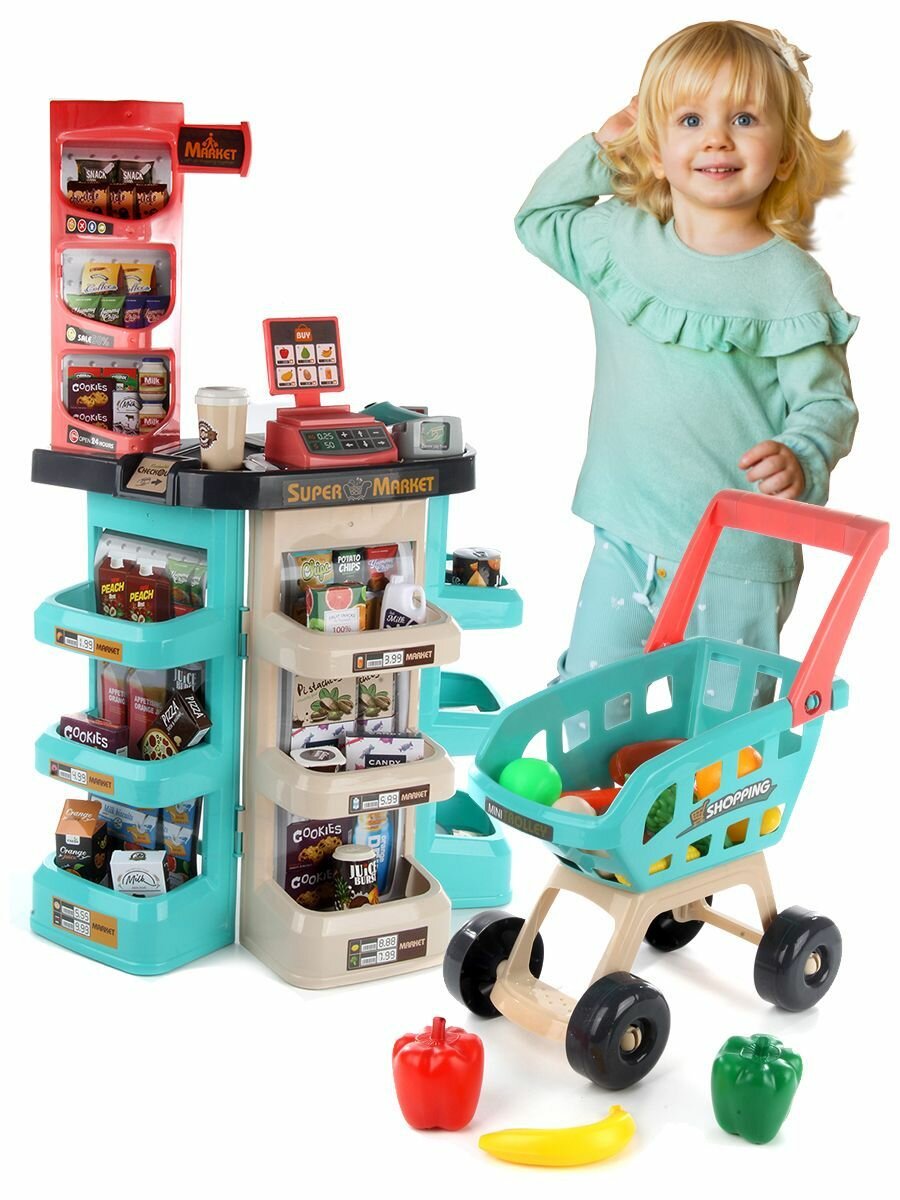 Набор для игры в супермаркет, с продуктами, тележкой и кассой, Veld Co интересное: