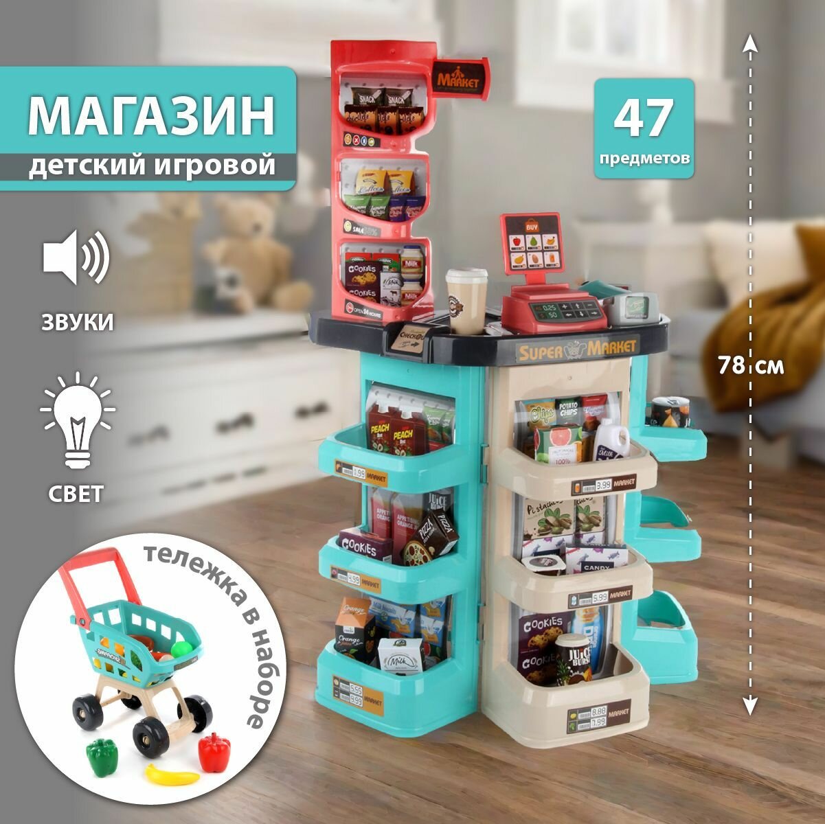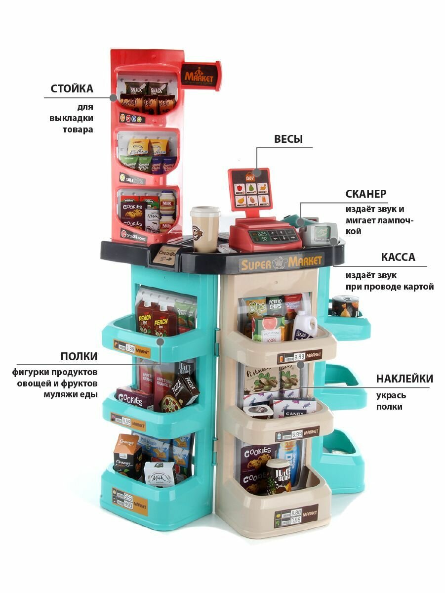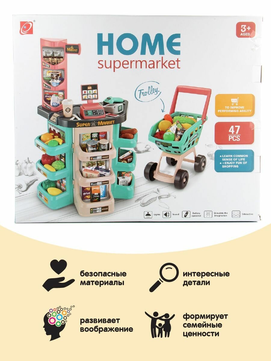 Набор для игры в супермаркет, с продуктами, тележкой и кассой, Veld Co интересное: