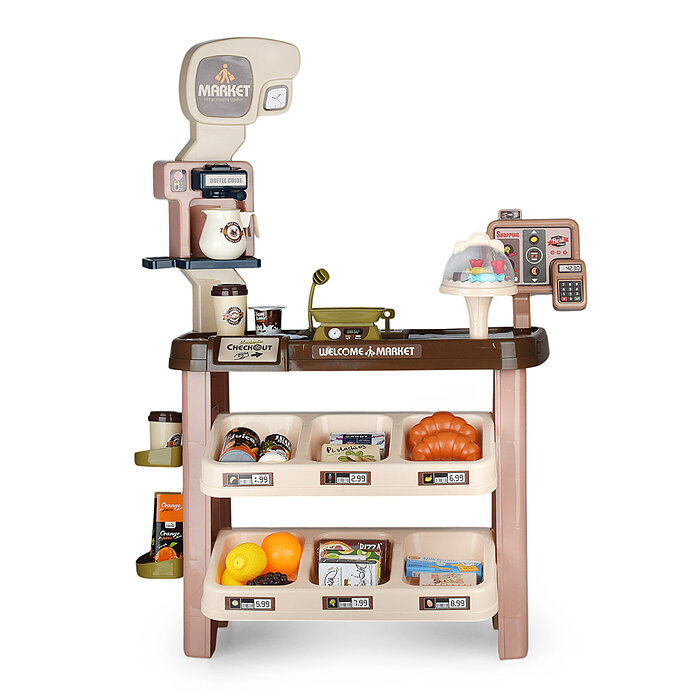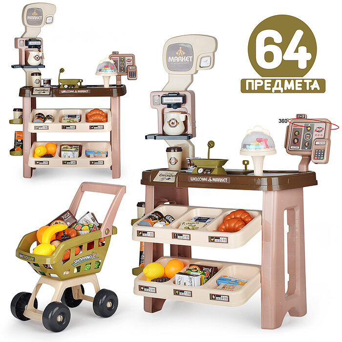| В комплекте | деньги, кассовый аппарат, продукты, сканер, тележка |