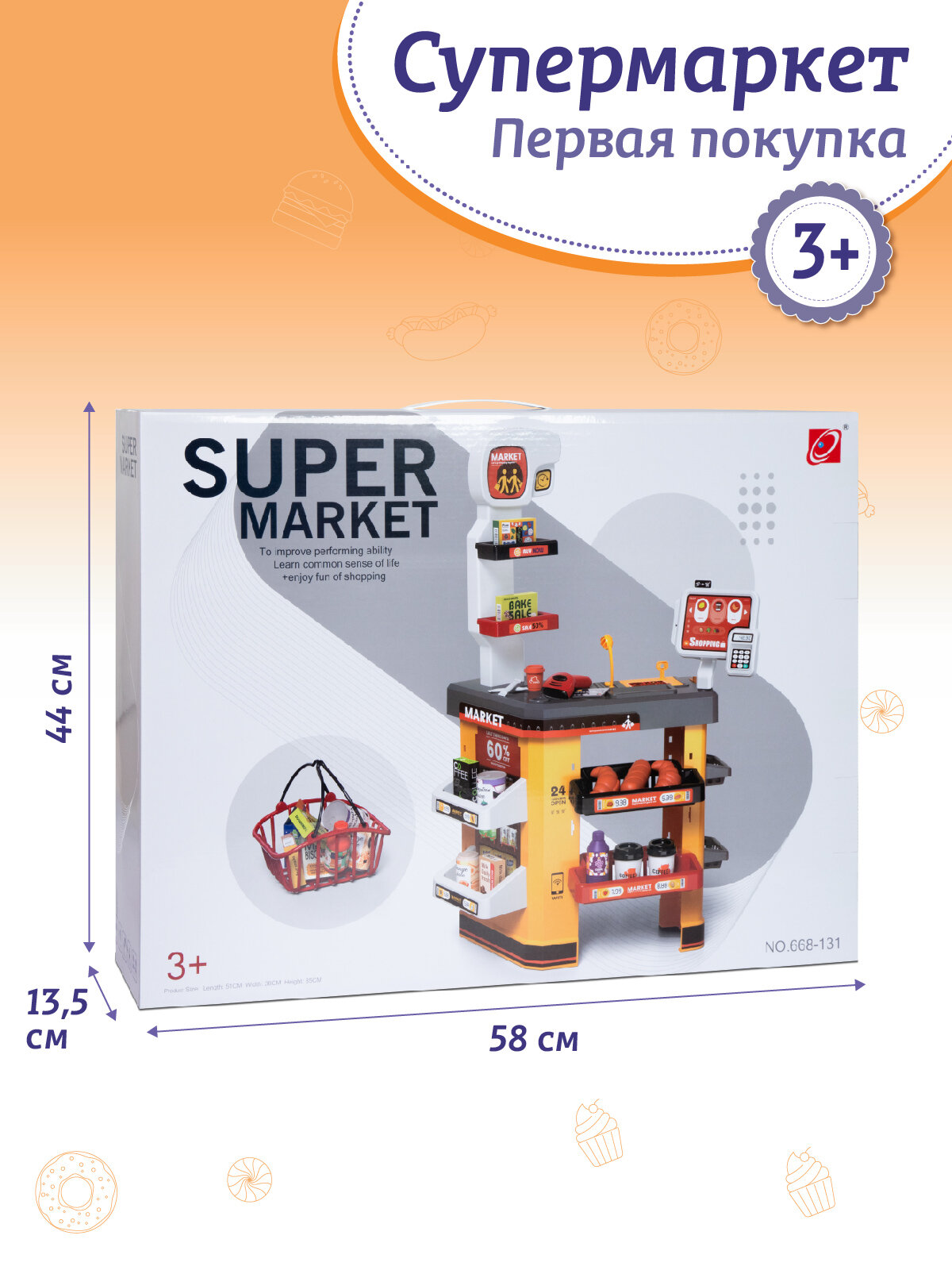 Супермаркет Первая покупка с корзинкой, сканер/терминал/деньги, свет/звук, JB0212820 интересное: