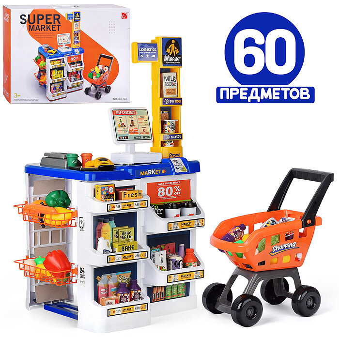 Игровой набор супермаркет 668-133 "Продукты" (60 предмета) в коробке интересное: