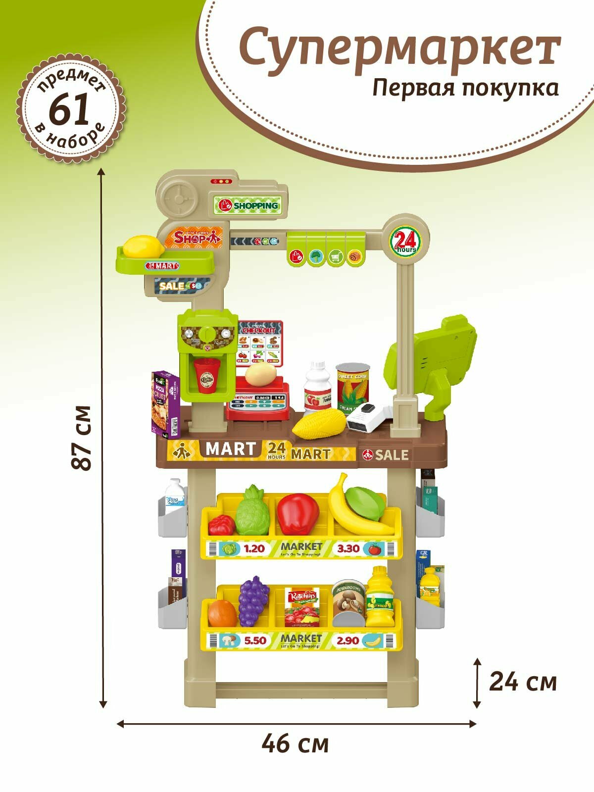Супермаркет Первая покупка с корзинкой, игровой набор, сканер/весы, свет, звук, JB0213097