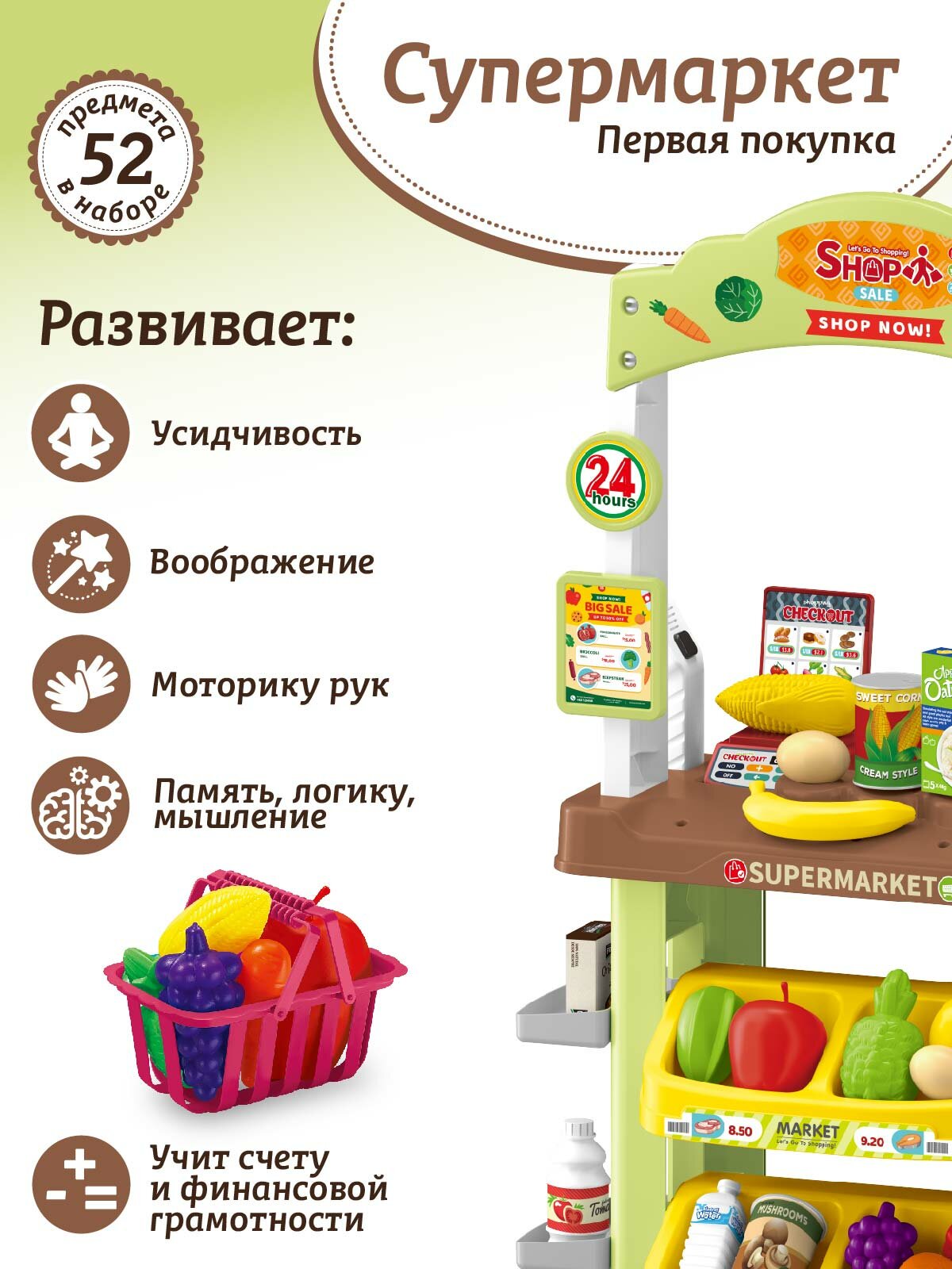 Купить Супермаркет Первая покупка с корзинкой, игровой набор, сканер/весы, свет, звук, JB0213097